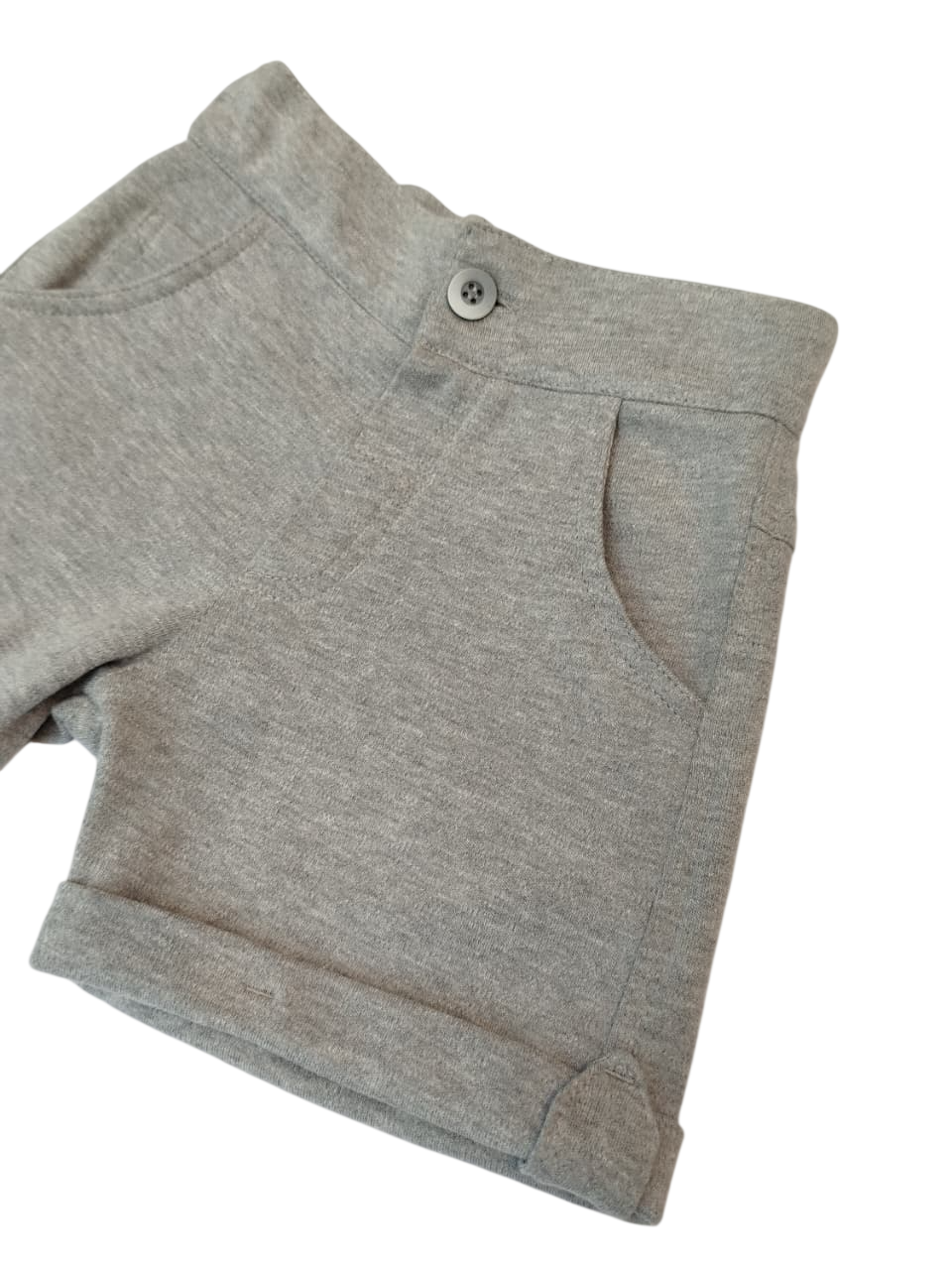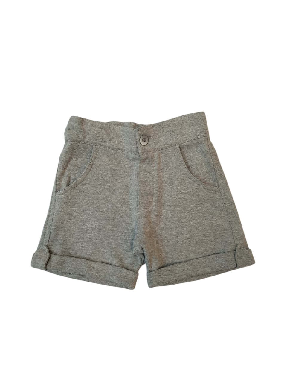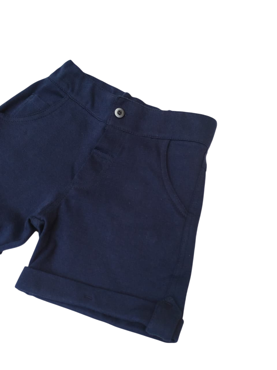 Bermuda com a barra virada, possui bolsos na frente e botão para fechamento.