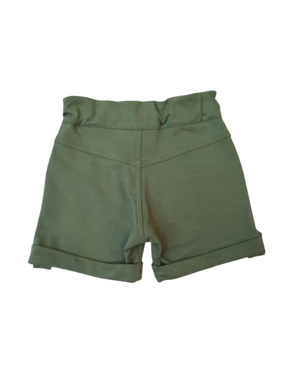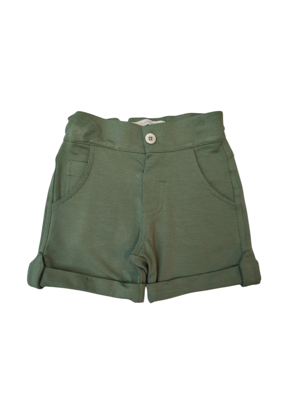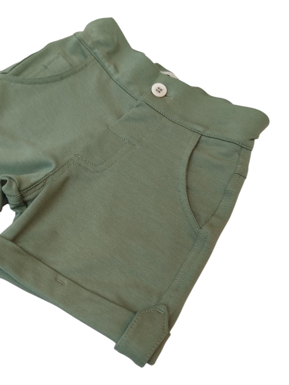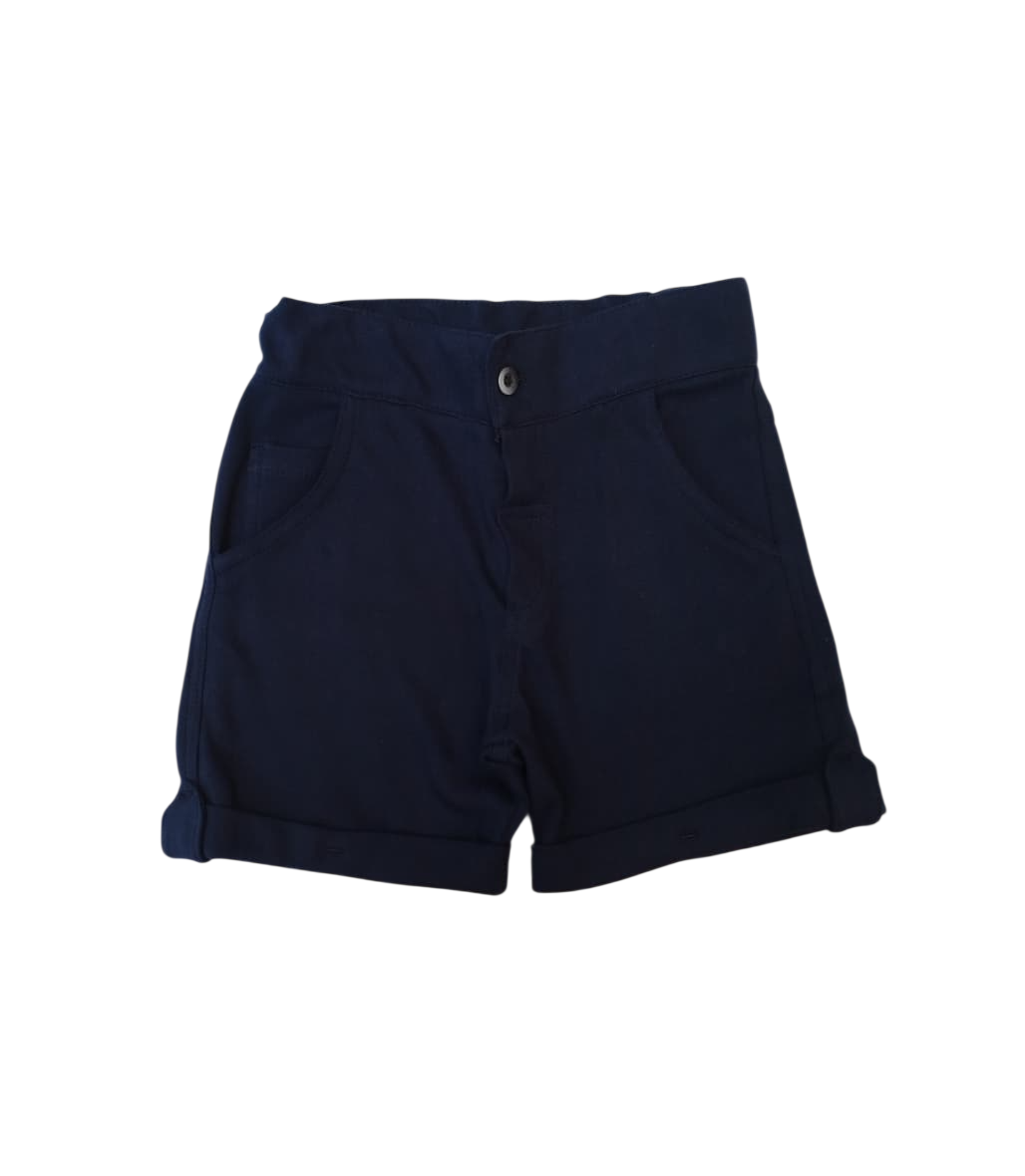 Bermuda com a barra virada, possui bolsos na frente e botão para fechamento.