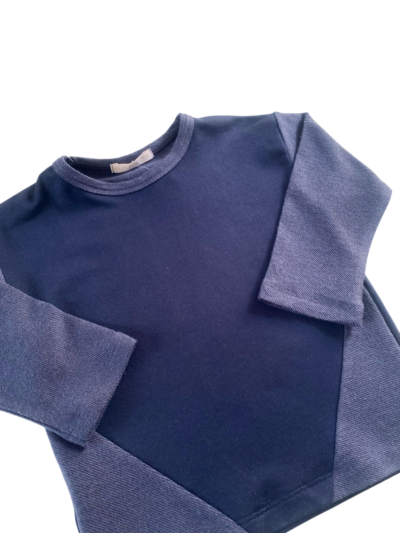 Blusão recortes bicolor. 70% viscose, 27% algodão e 3% elastano.