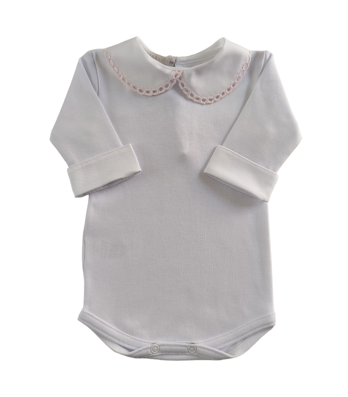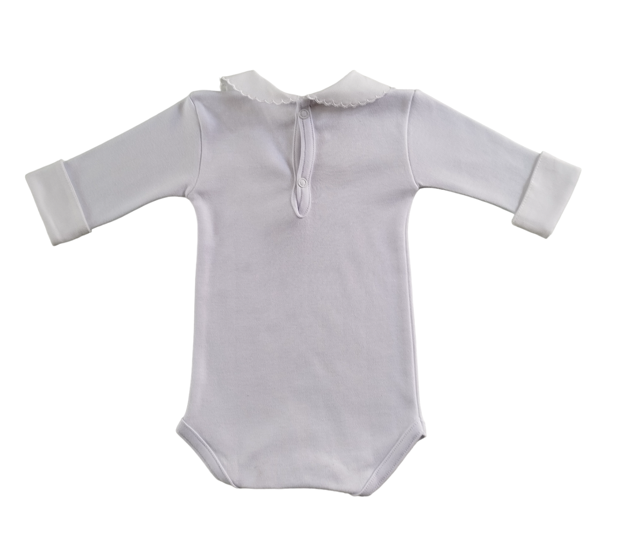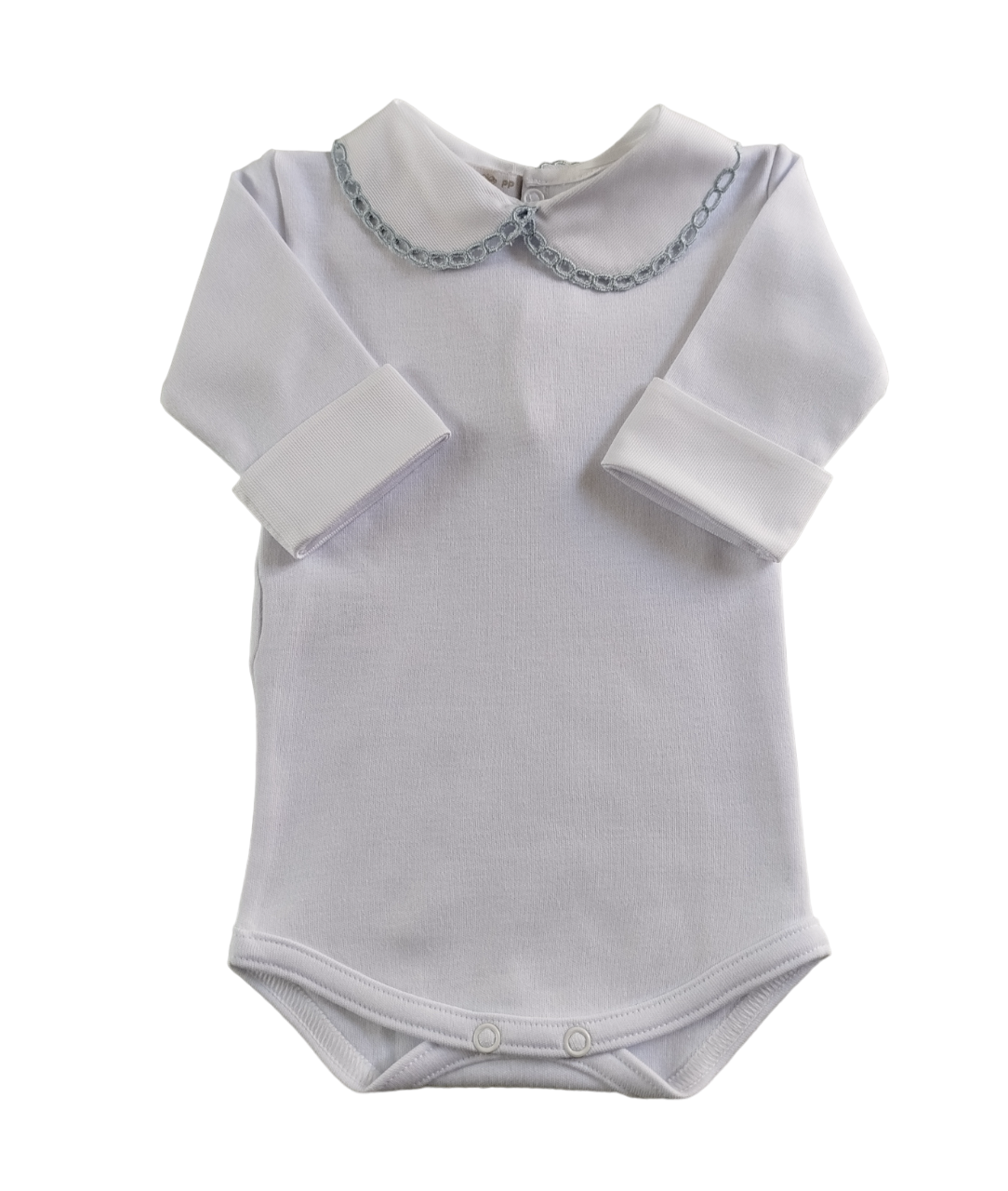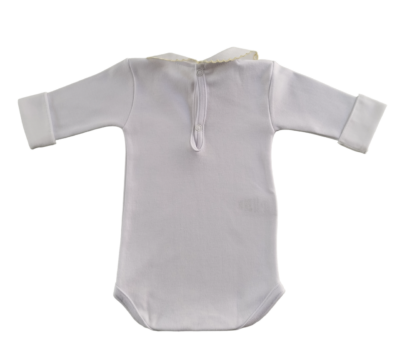 Body com botões de pressão para fecho, gola redonda e detalhes bordados. 100% algodão.