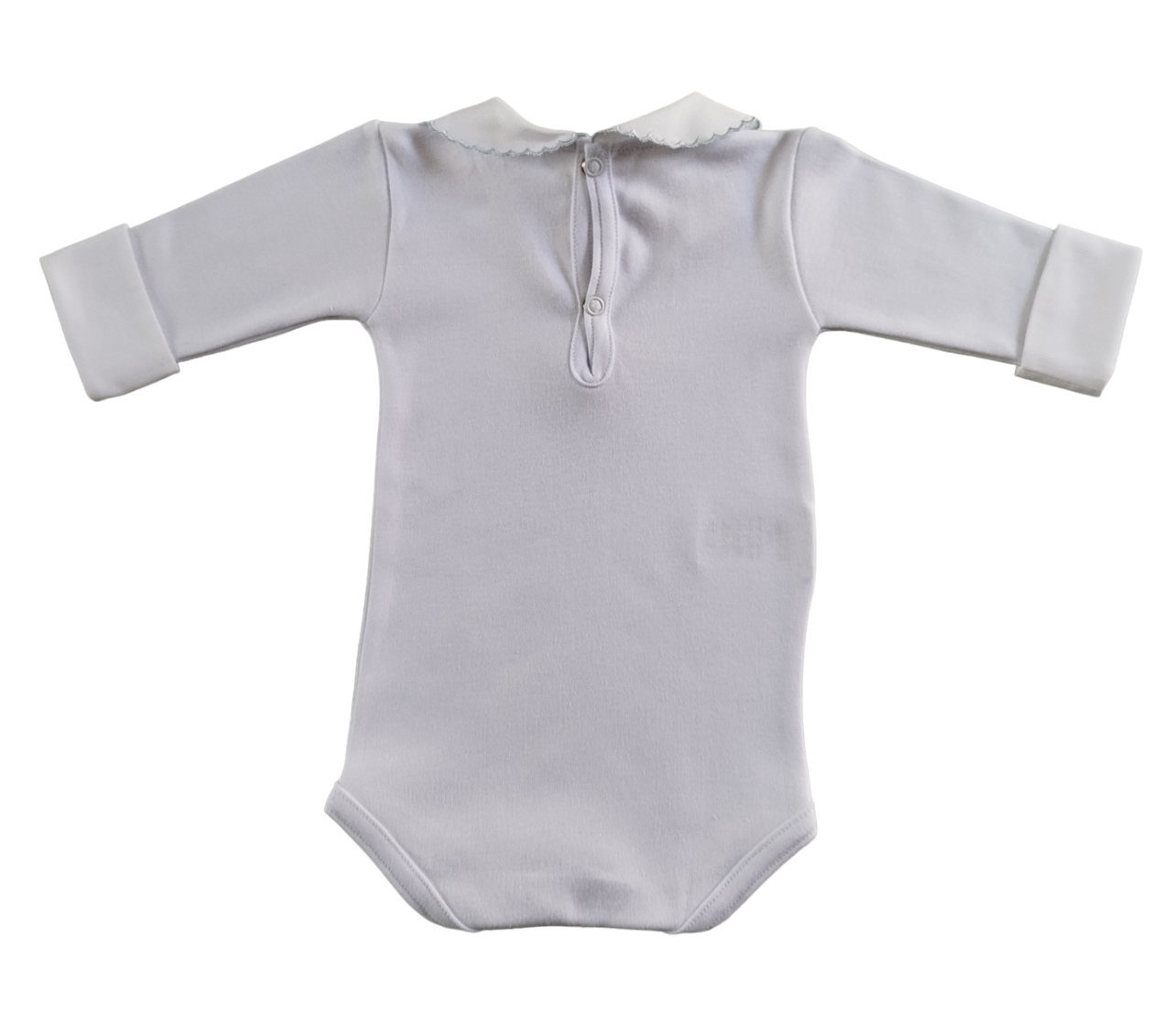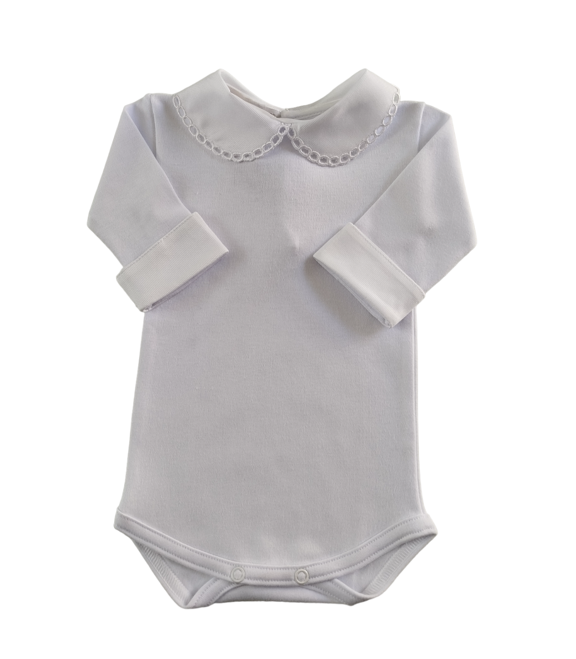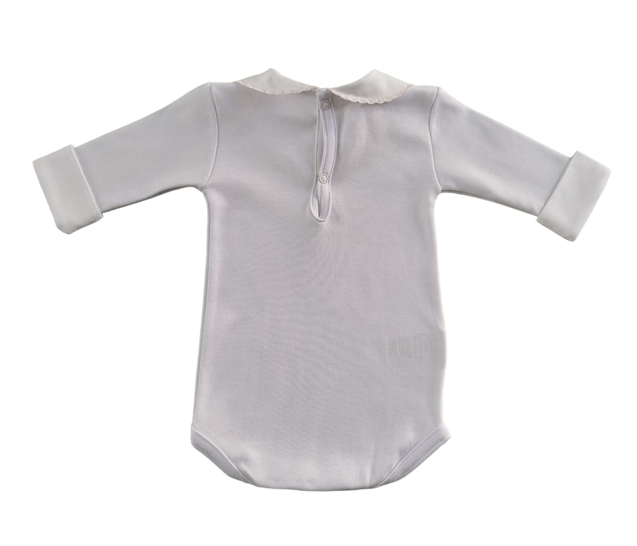 Body com botões de pressão para fecho, gola redonda e detalhes bordados. 100% algodão.