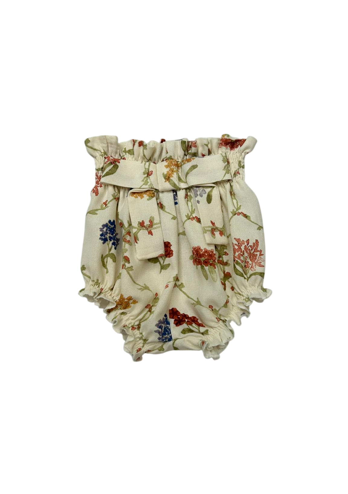 Calcinha com estampa em aquarela, possui lastex na cintura e nas pernas, com detalhe de laço na frente.