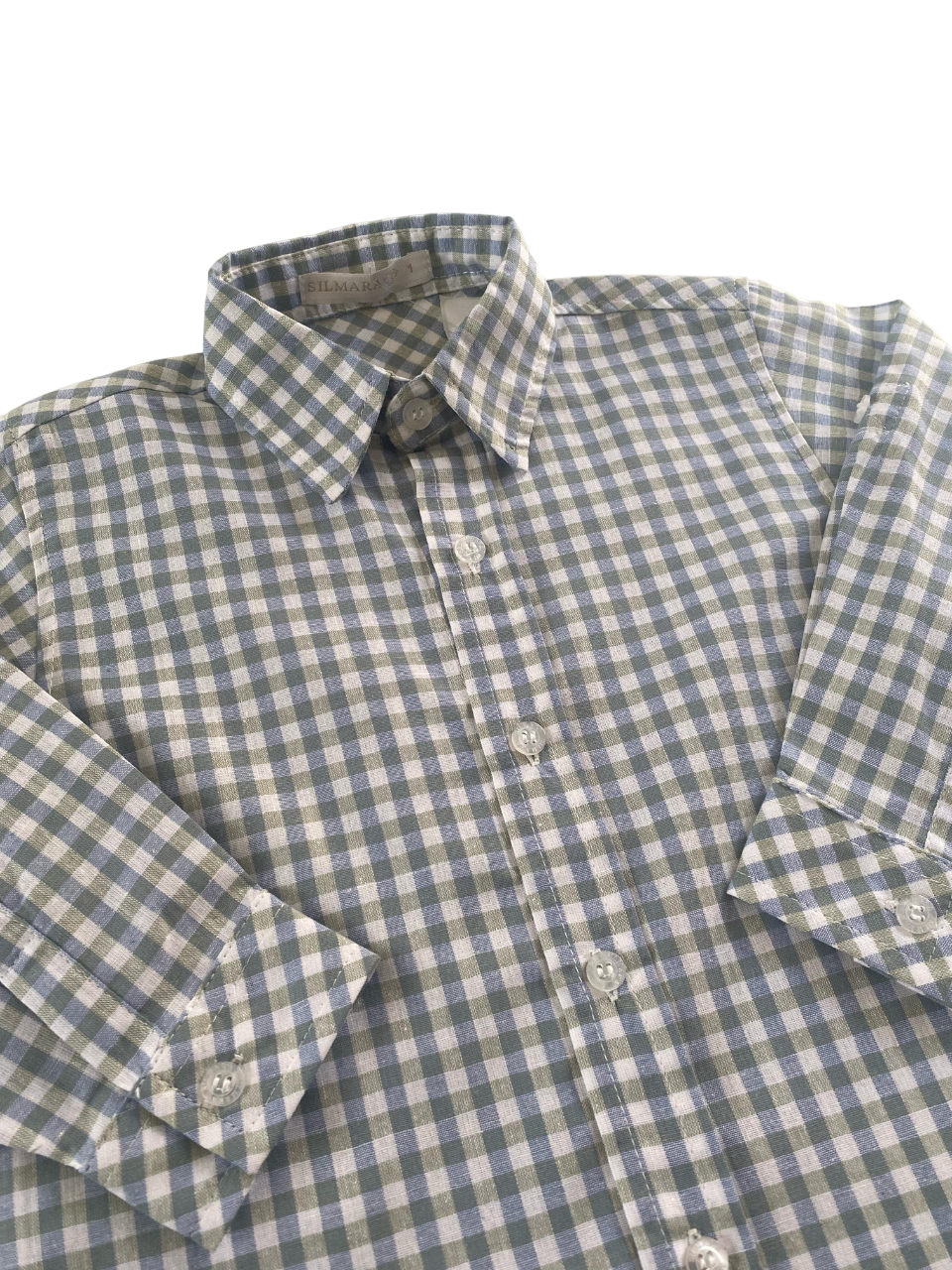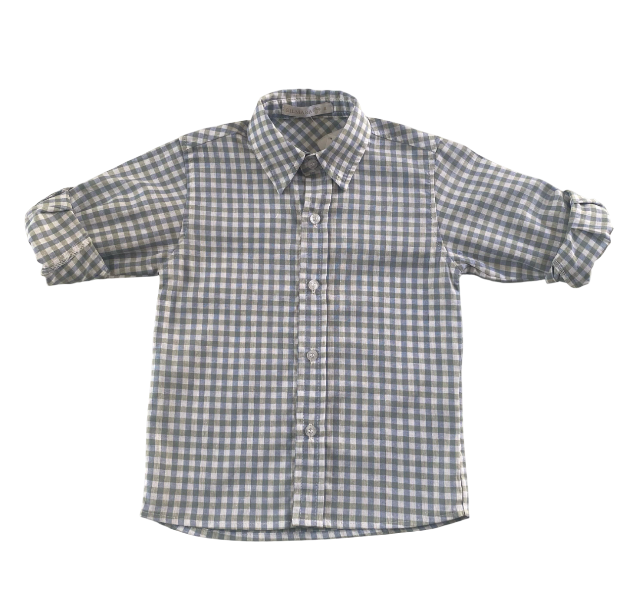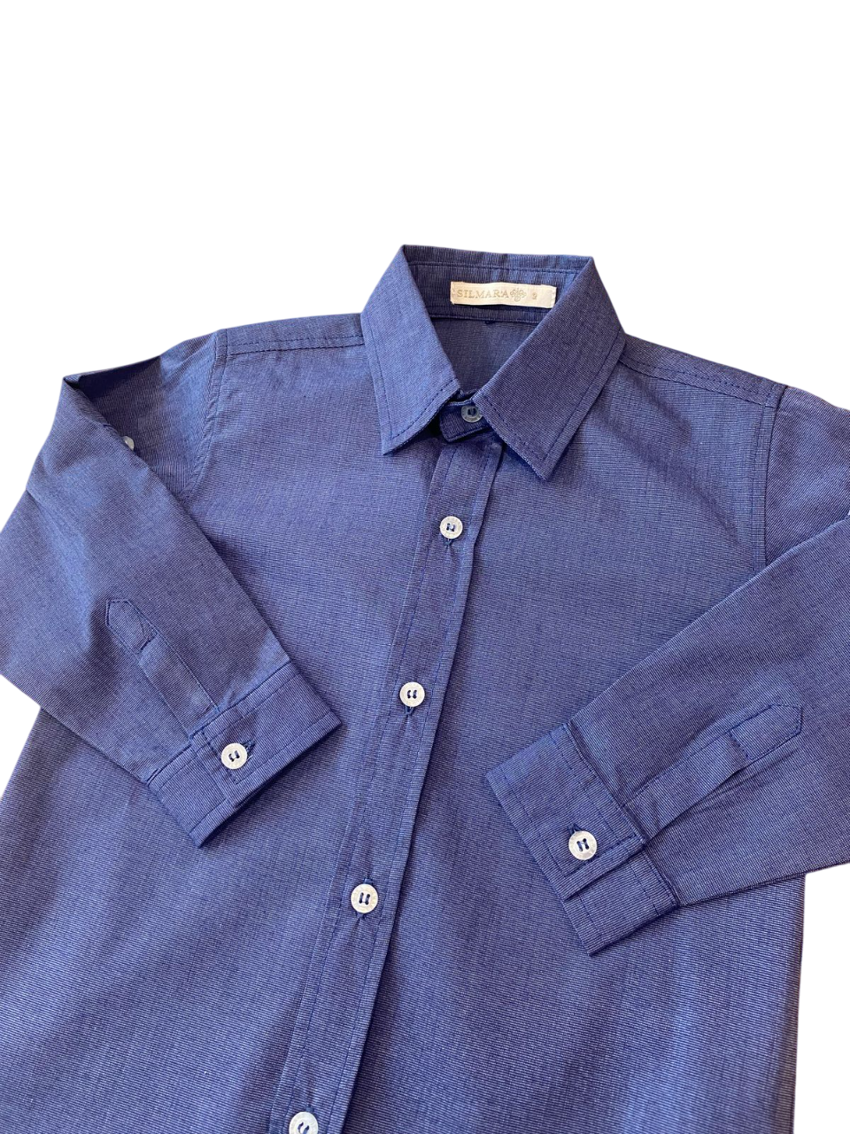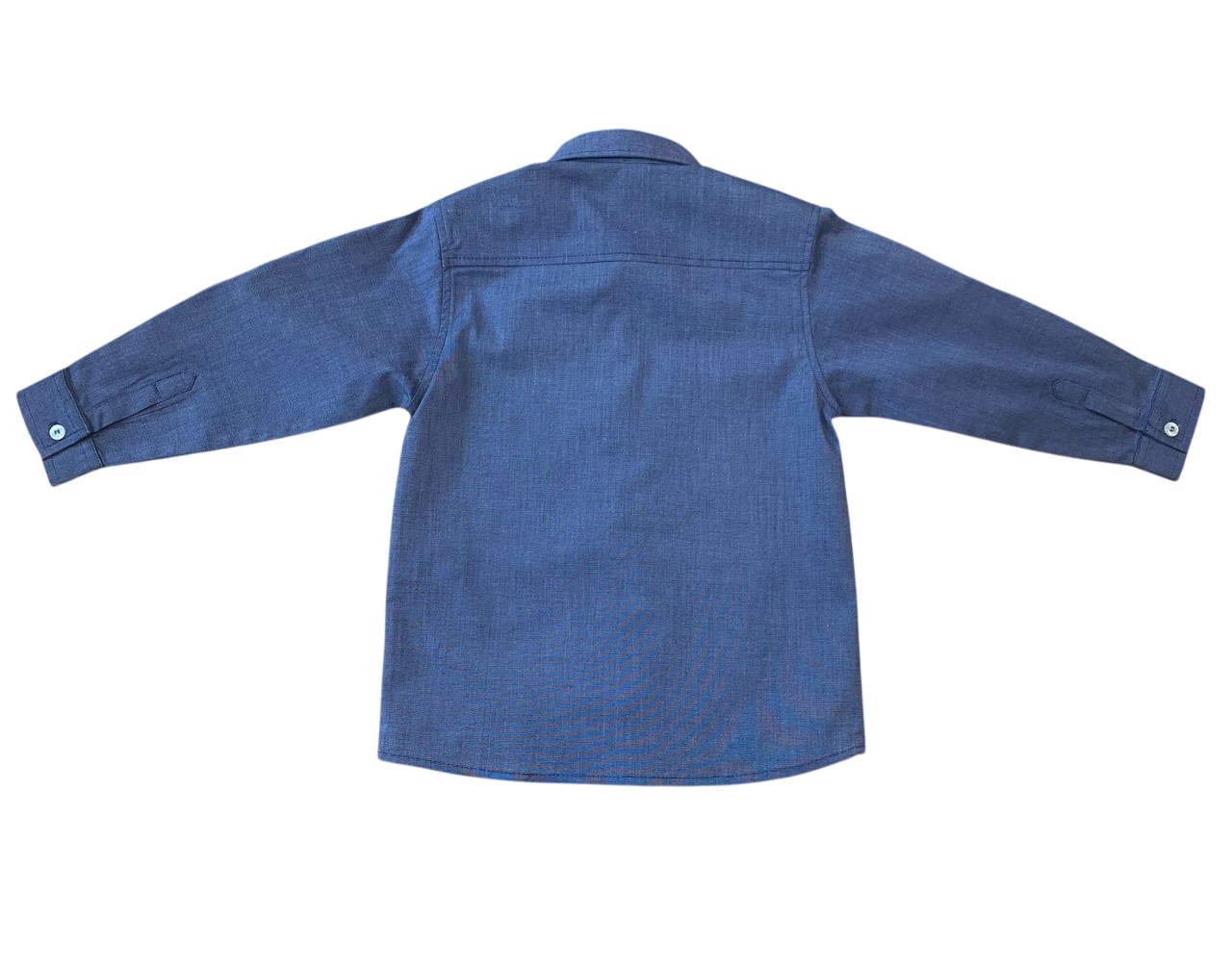 Camisa no tecido plano com gola bico e martingale. 100% algodão.