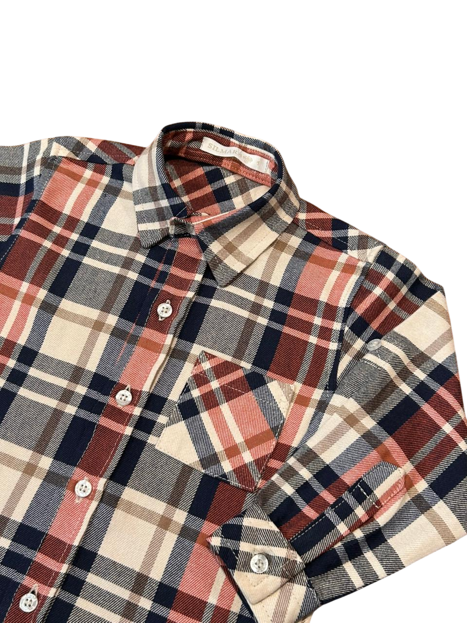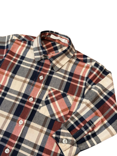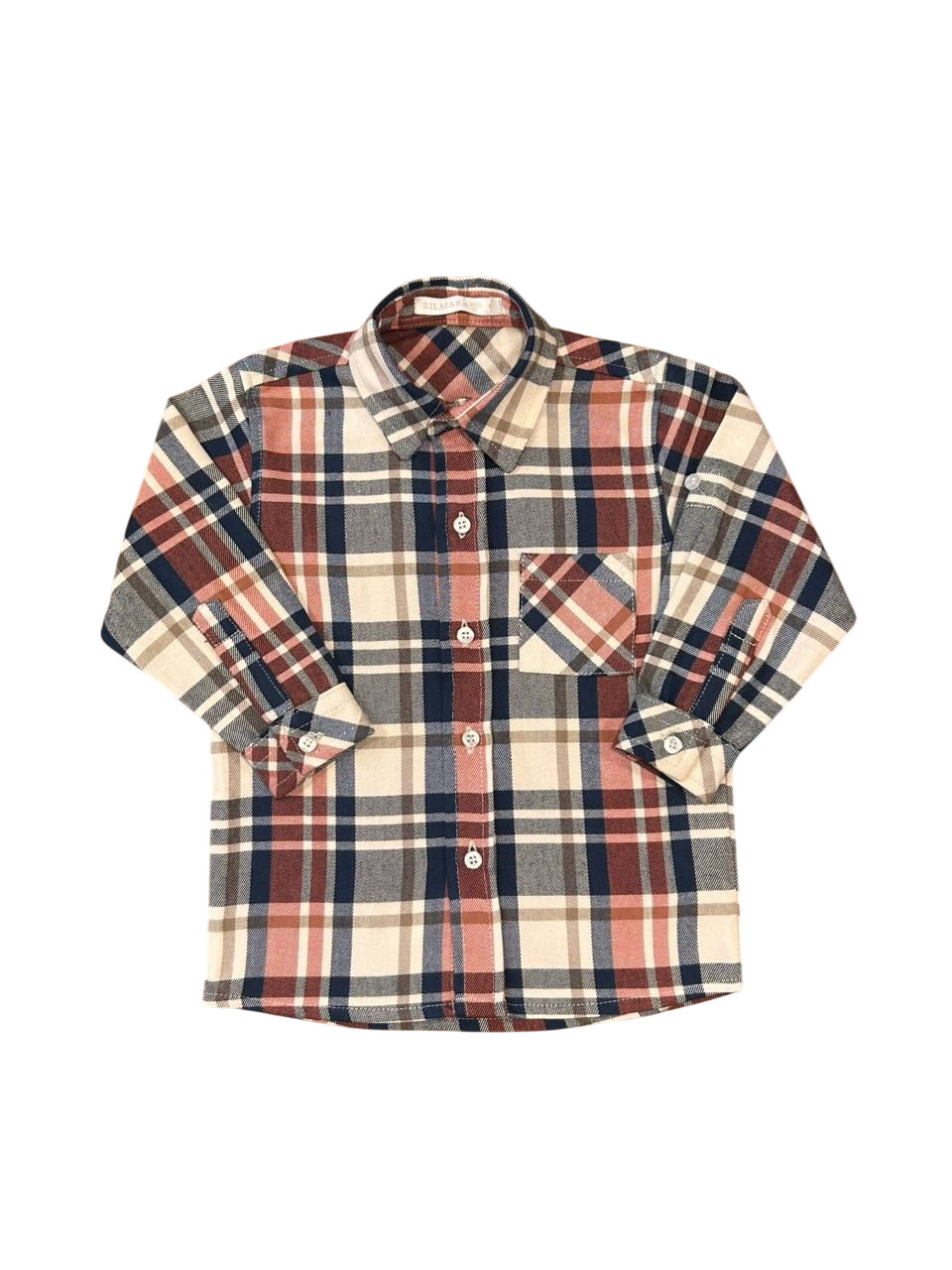 Camisa Flanela, possui bolso quadrado na frente e gola bico, botões para fechamento, com martingale na manga.