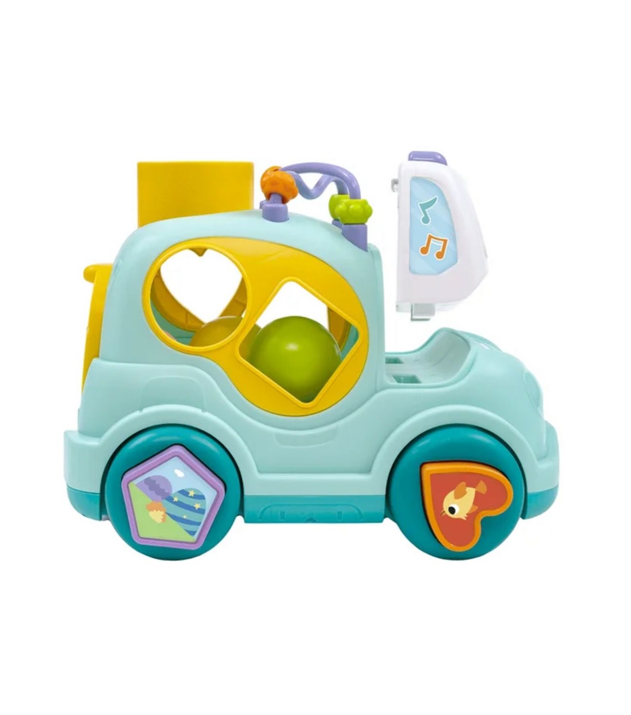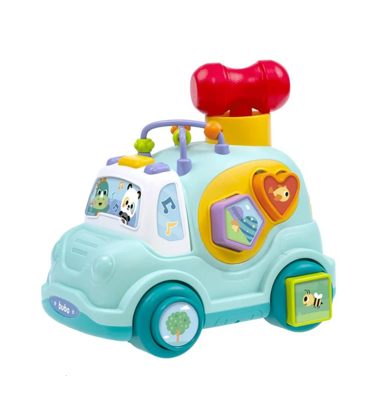 Com peças coloridas para encaixar, formas geométricas e sons, o carrinho incentiva o raciocínio lógico, a percepção visual e a criatividade, tornando-se uma ótima opção para os primeiros aprendizados.