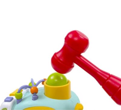 É um brinquedo interativo que estimula o aprendizado e a coordenação motora de forma divertida.