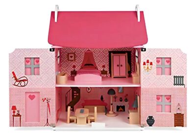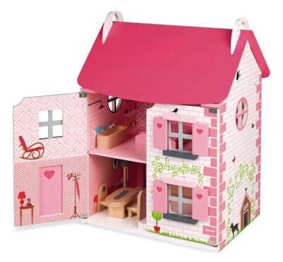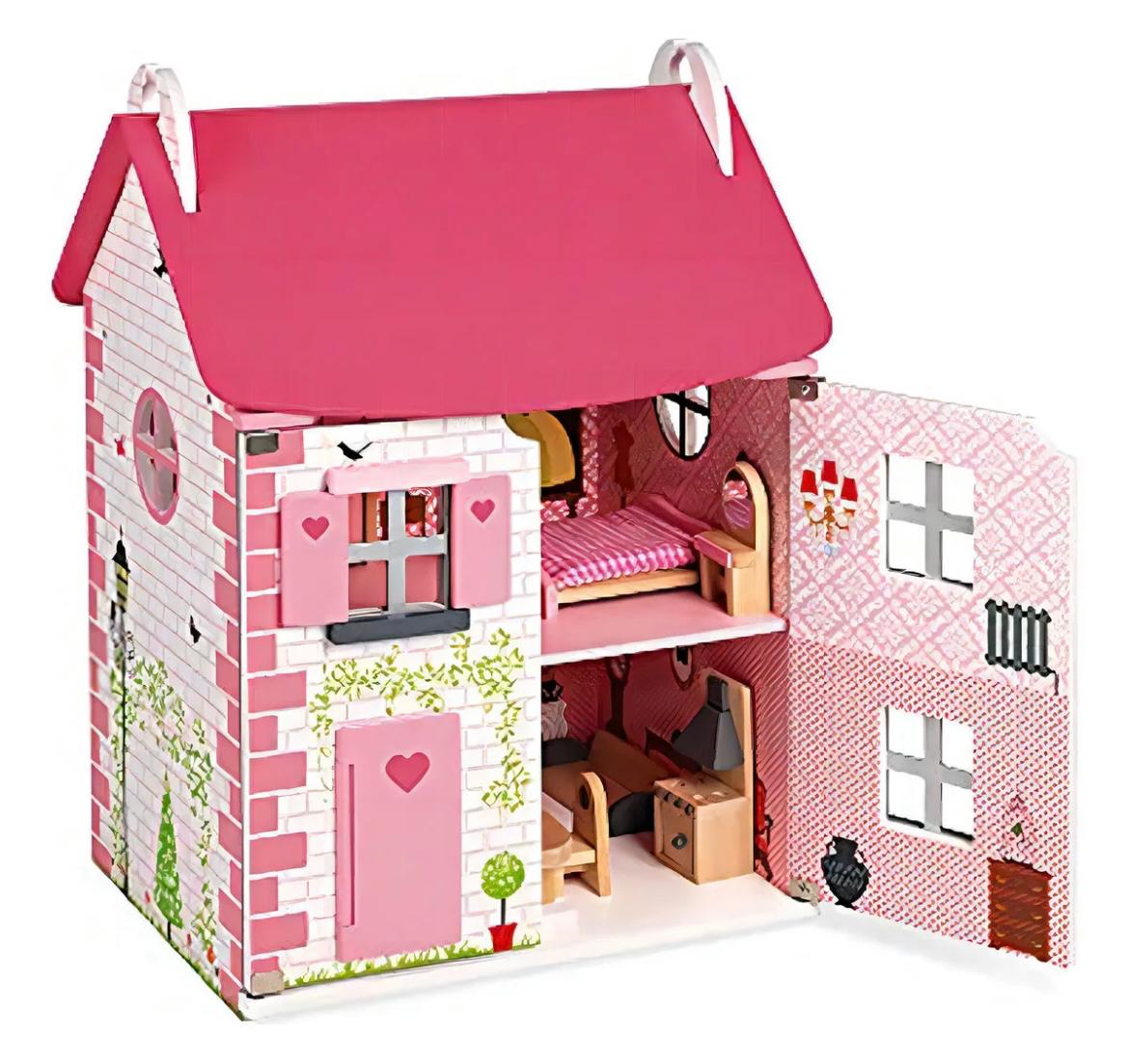 Uma fantástica casa de bonecas de 3 andares lindamente decorada com móveis variados. Abra as portas da casa para brincar e feche-as para guardar tudo dentro e transportar com mais facilidade. As crianças podem criar seu próprio mundo e inventar suas próprias histórias! As práticas portas são magnéticas e a casa também pode ser aberta pelo teto para melhor acesso aos diferentes cômodos. A casa é compatível com figuras de até aproximadamente 11,5 cm de altura. A mobília inclui: 11 acessórios para decorar a sua casa: um roupeiro com portas de abrir, uma cama com colchas, toucador, banheira, sofá, candeeiro, mesa, 2 cadeiras e uma cozinha. Fácil montagem.