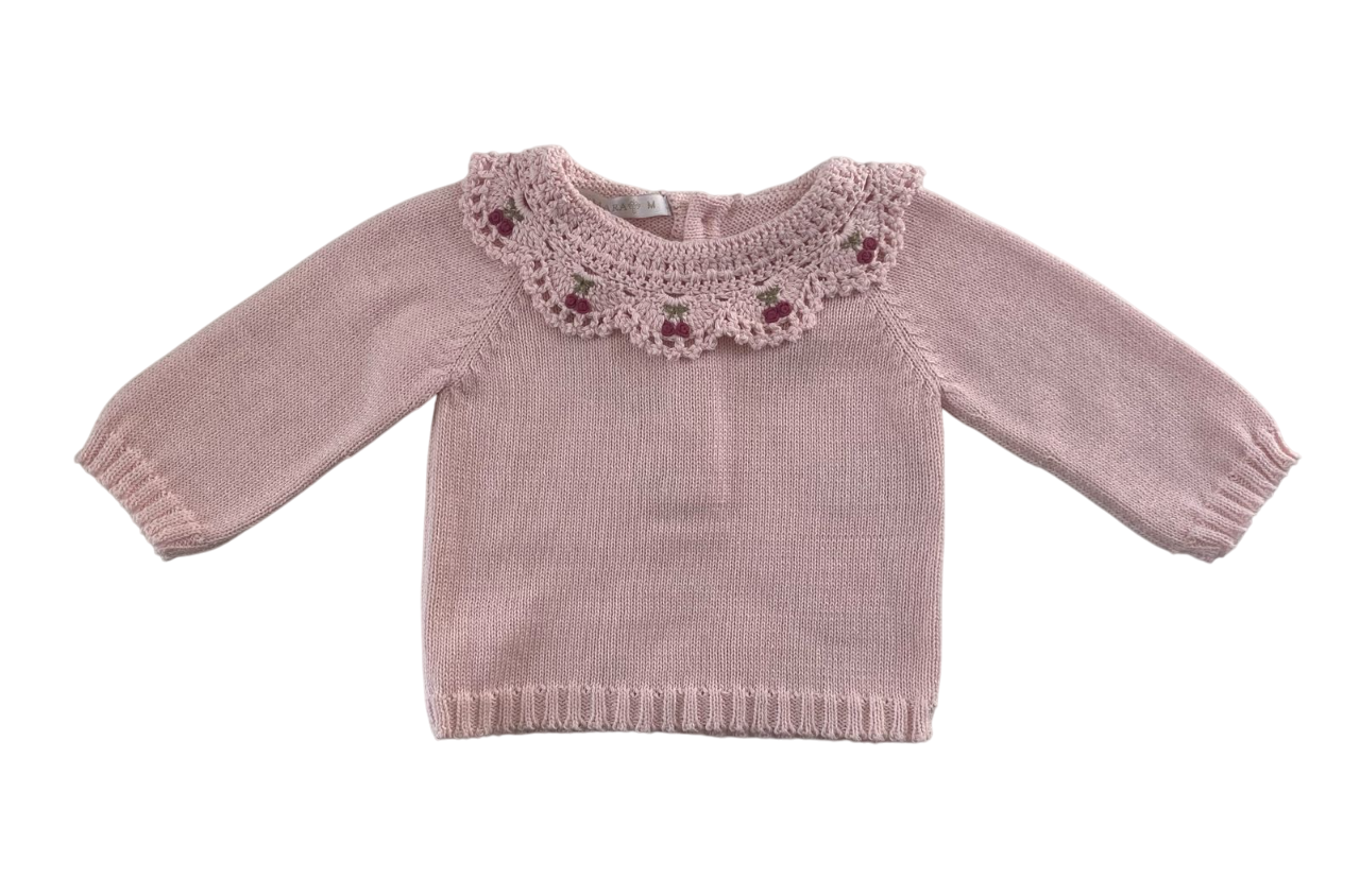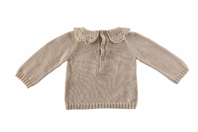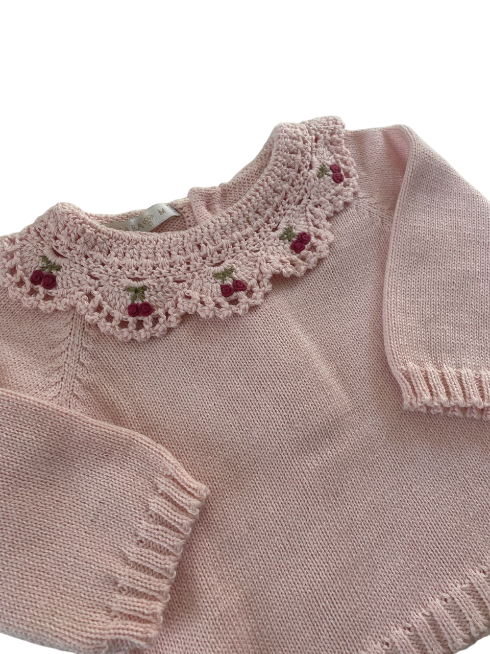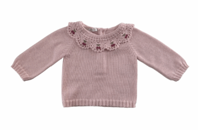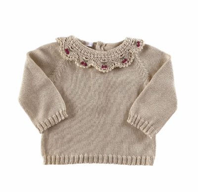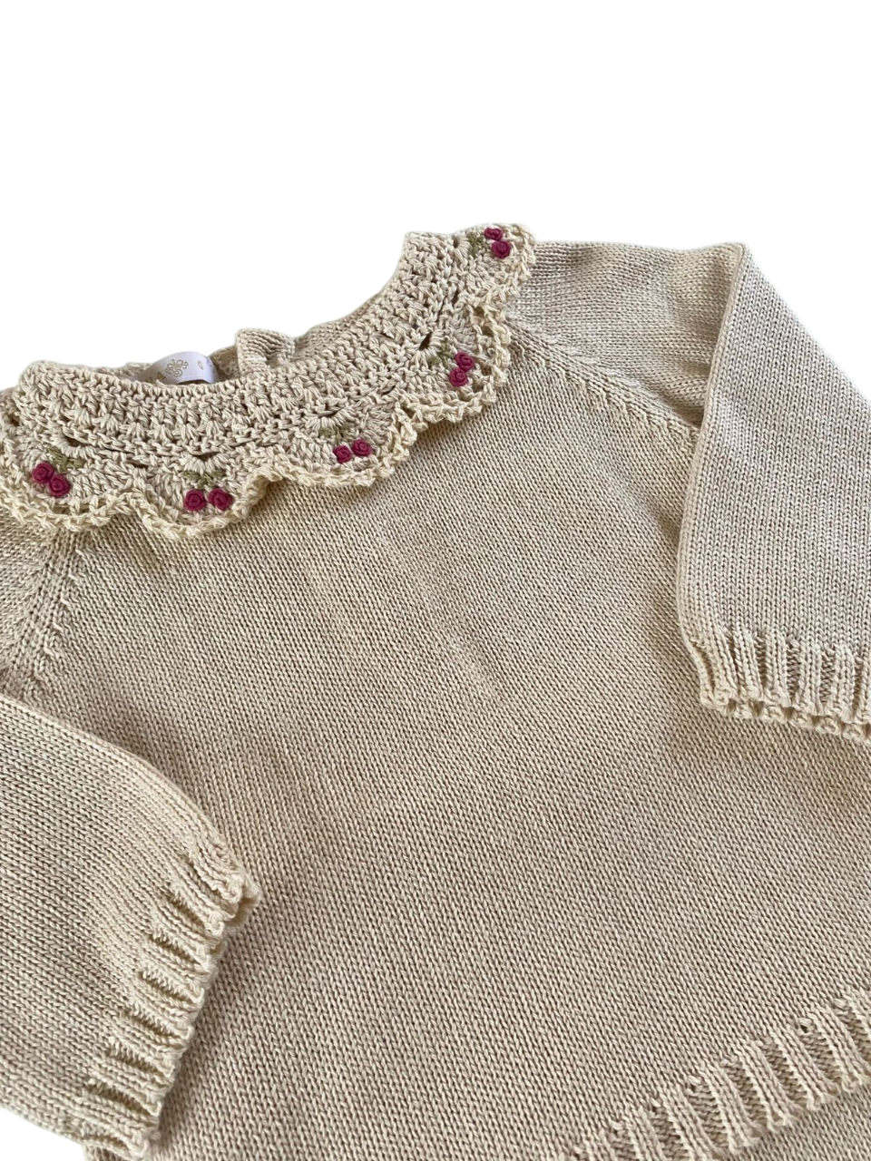 Conjunto duas peças feito em tricot com gola crochet. 50% algodão e 50% acrilíco.