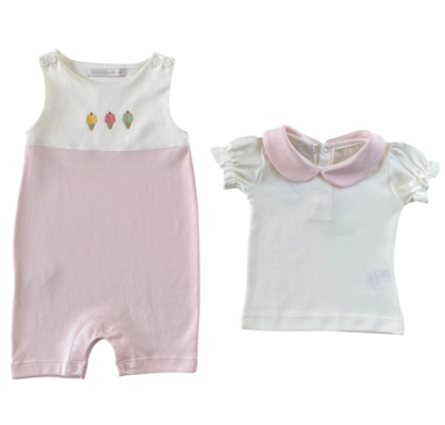 Jardineira regata com camiseta feita em algodão peruano 100% pima cottton.