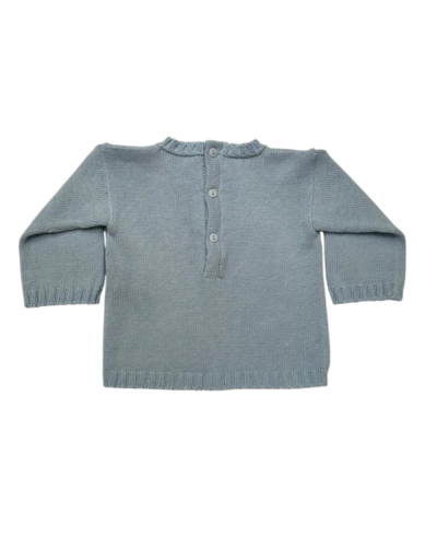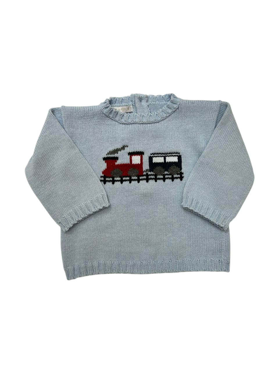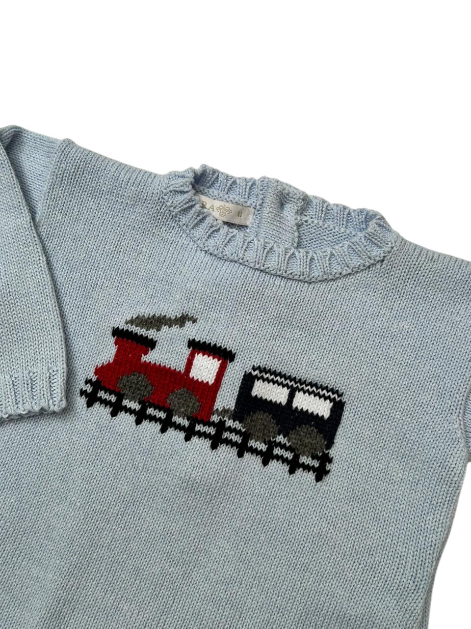 Conjunto tricot com bordado de trem, calça com elástico na cintura.