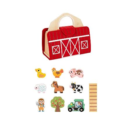 Fazendinha Encantada Maleta Madeira, permite transportar a diversão e o aprendizado para qualquer lugar. Perfeita para pequenos exploradores, esta Fazendinha Encantada é compacta e cheia de charme, sendo completa com elementos adoráveis como um trator, uma vaquinha e uma fazendeira, além de diversos bichinhos que convidam à interatividade.