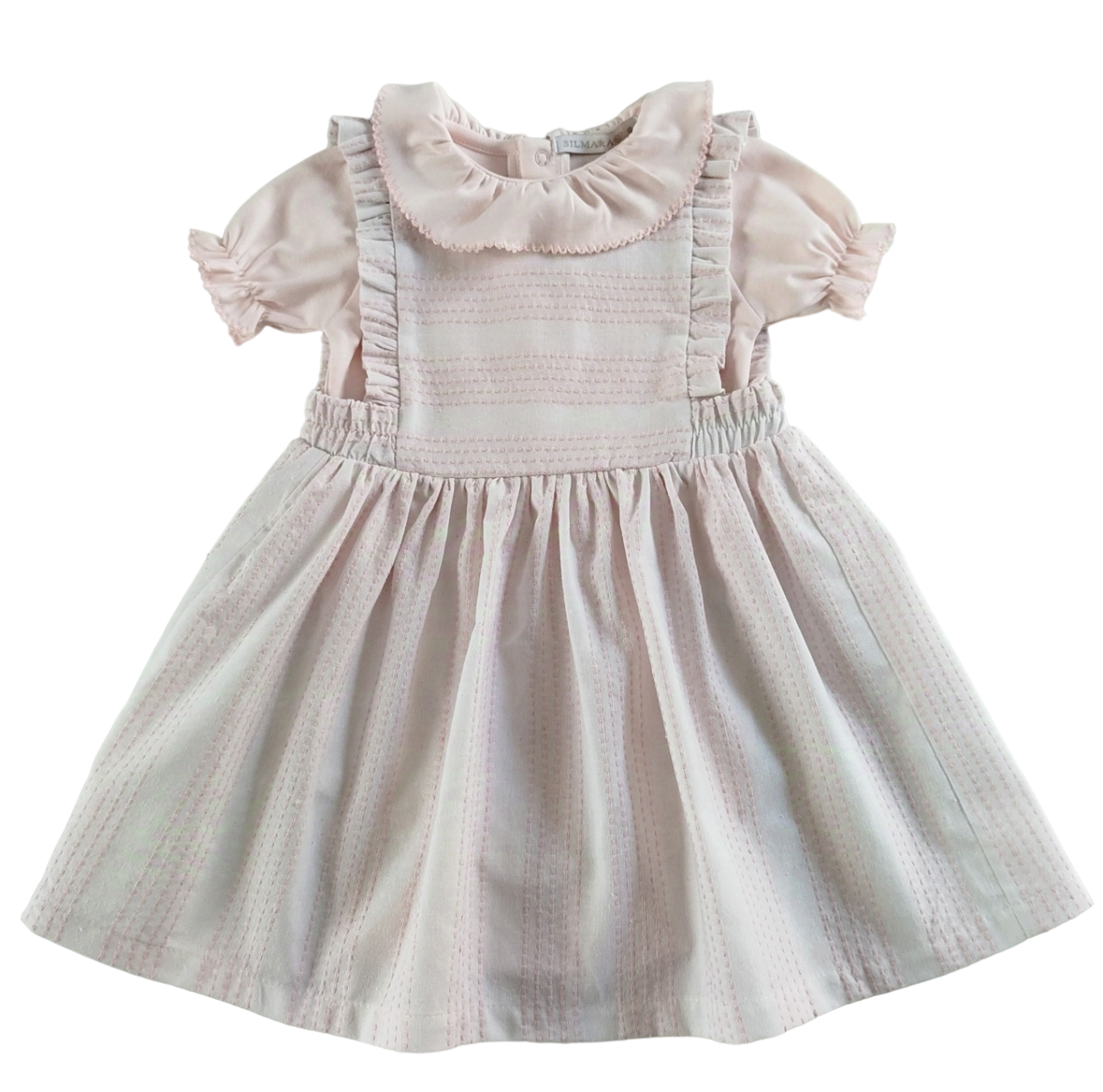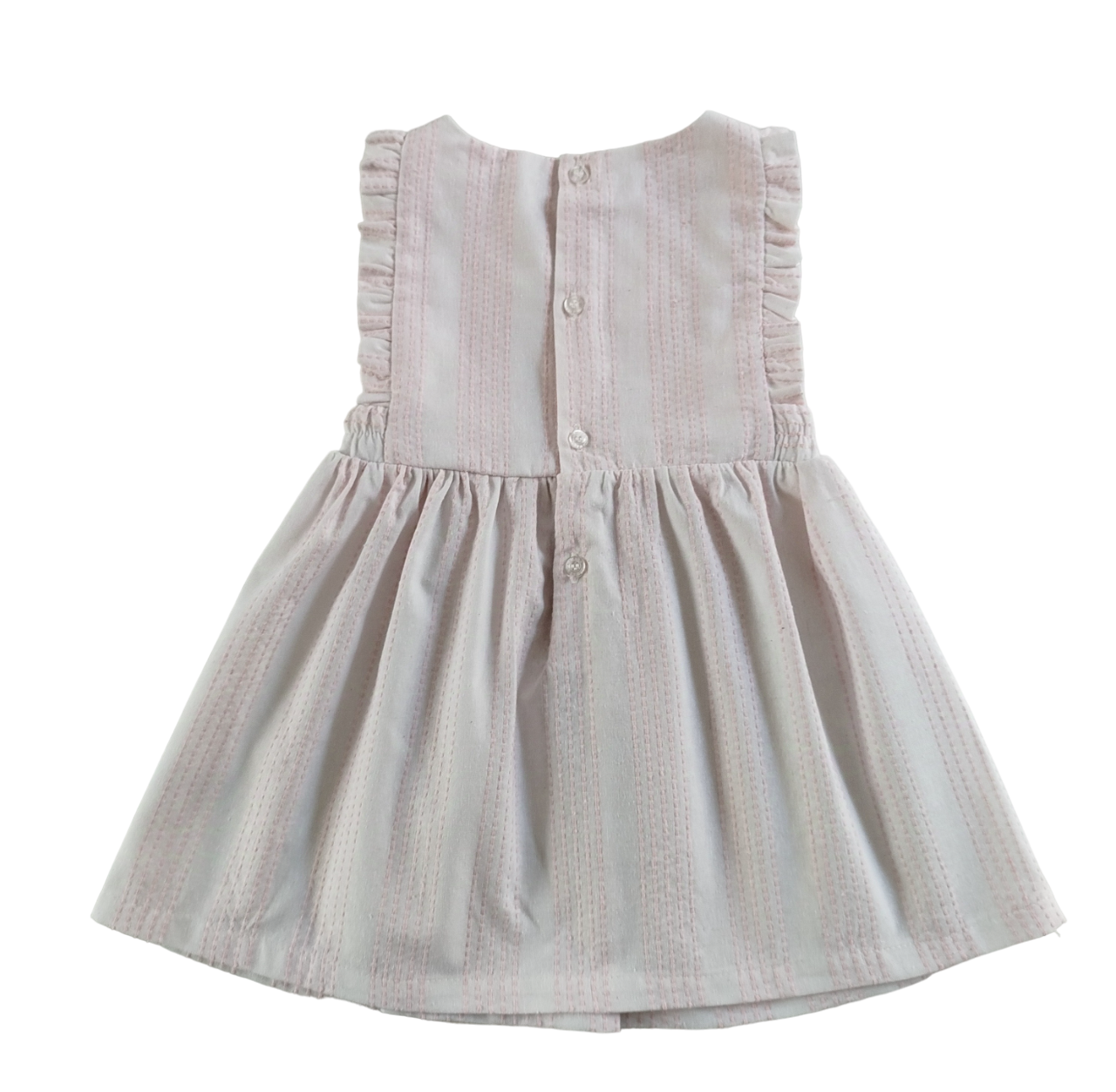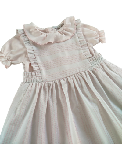 Jumper com elástico na cintura e detalhes babado. 100% algodão.