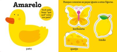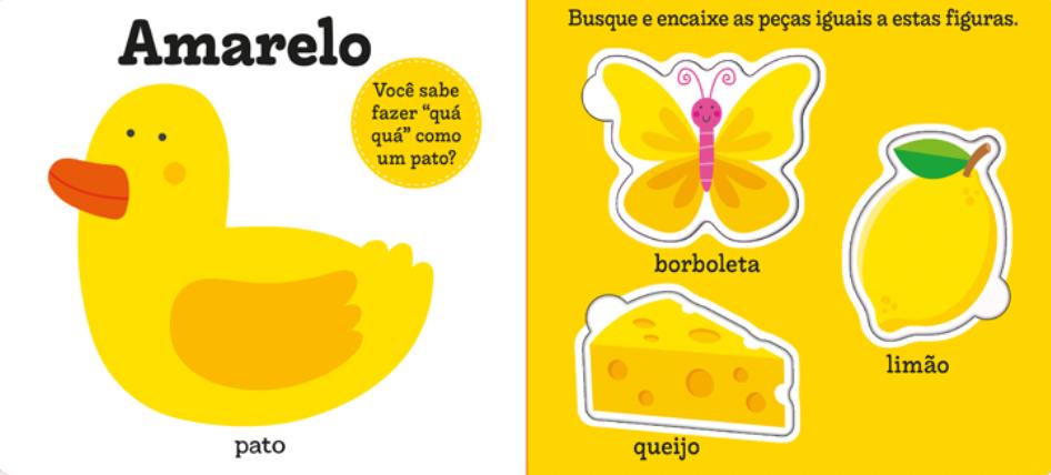 Contém 12 peças de formas variadas para encaixar no livro. Este conjunto é uma ótima maneira de introduzir as crianças pequenas na aprendizagem precoce das primeiras cores – palavras.