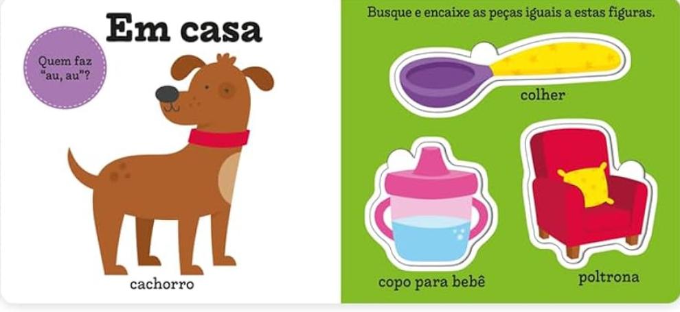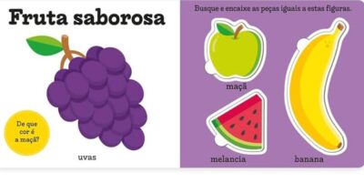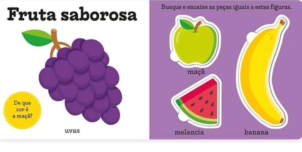 Contém 12 peças de formas variadas para encaixar no livro. Este conjunto é uma ótima maneira de introduzir as crianças pequenas na aprendizagem precoce das primeiras cores – palavras.