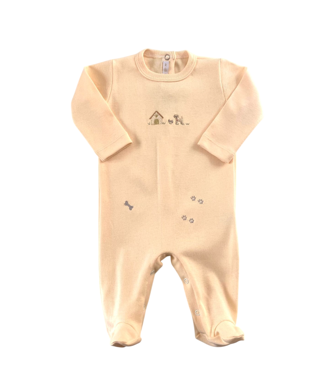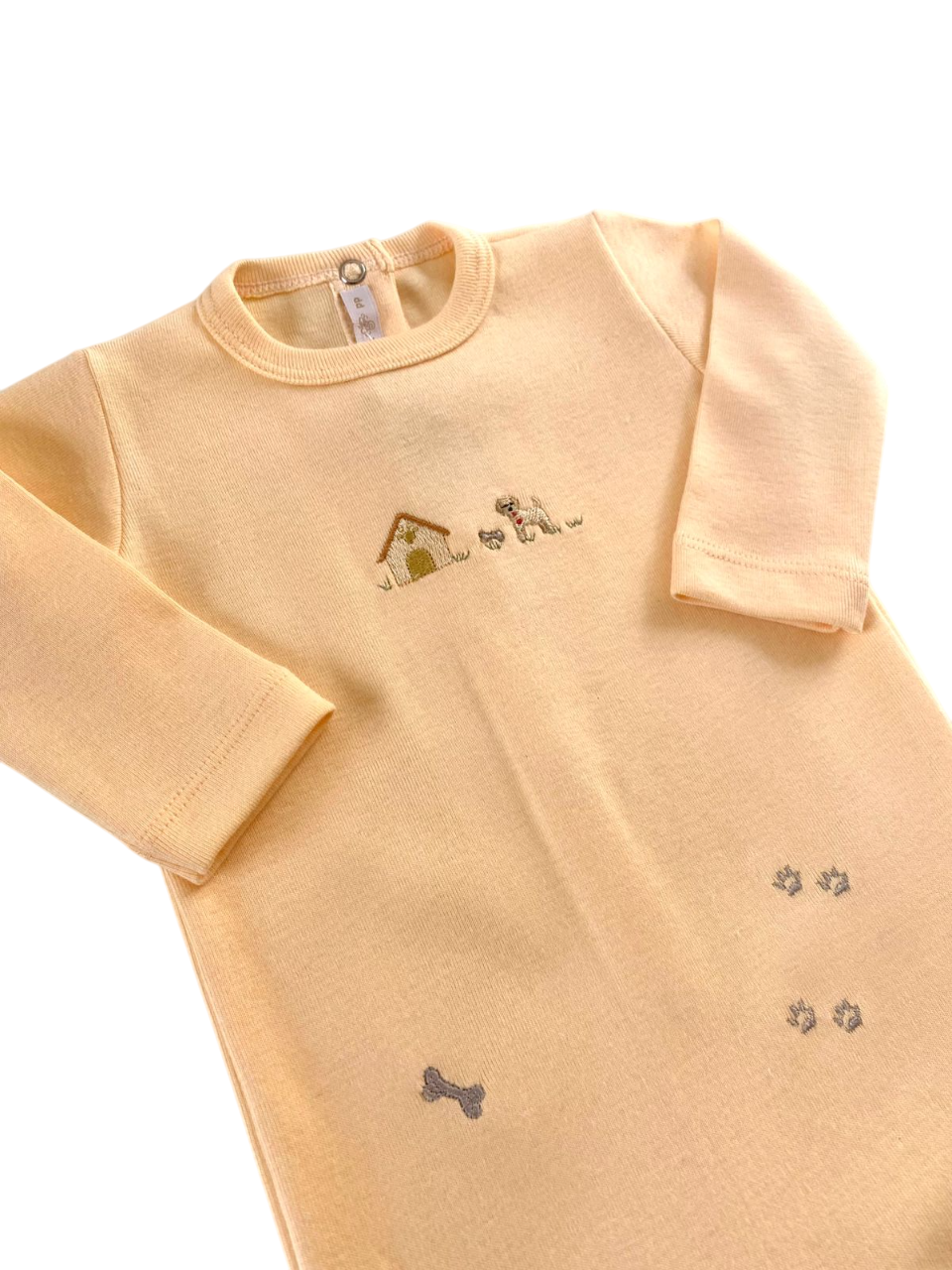 macacão com botões de pressão para fecho e detalhe bordado, 100% algodão.