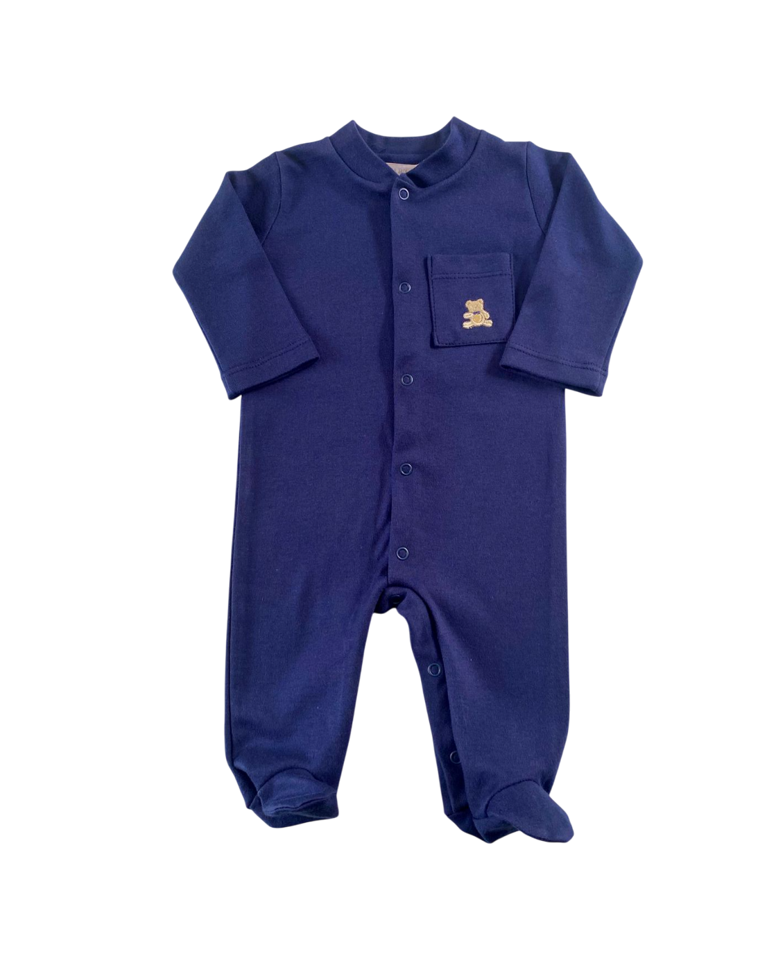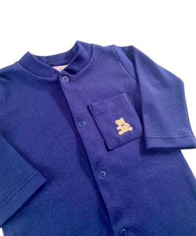 macacão com botões de pressão para fecho e detalhe bordado, 100% algodão.