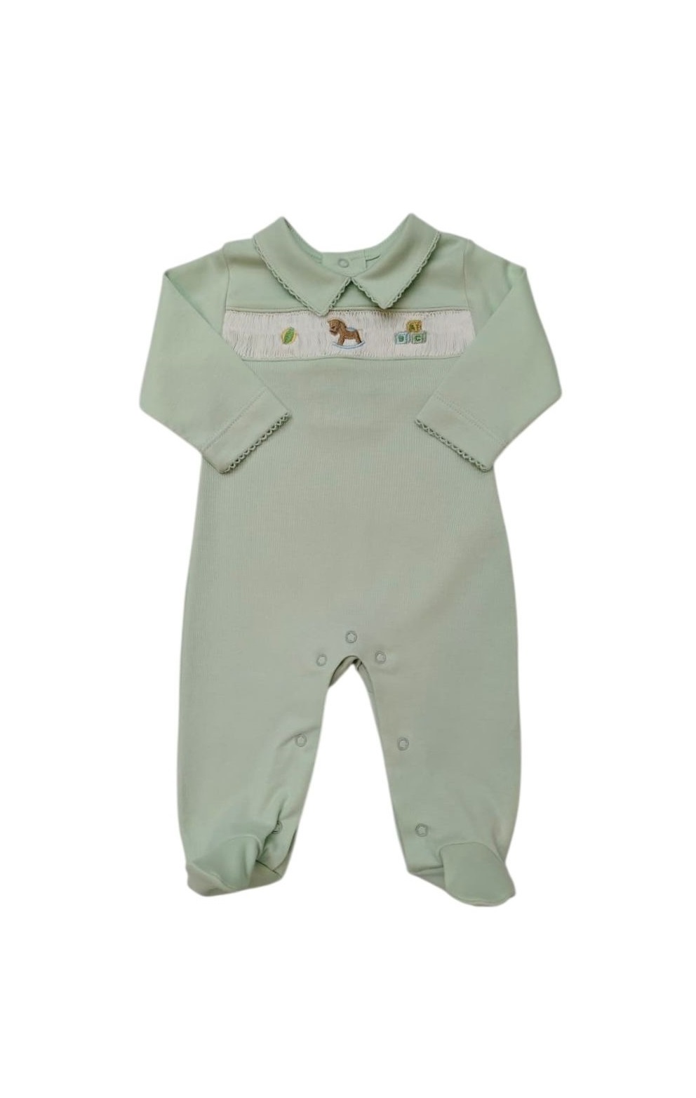 Macacão Faixa Cavalinho brinquedo possui botões nas costas e entrepernas, com gola bico.