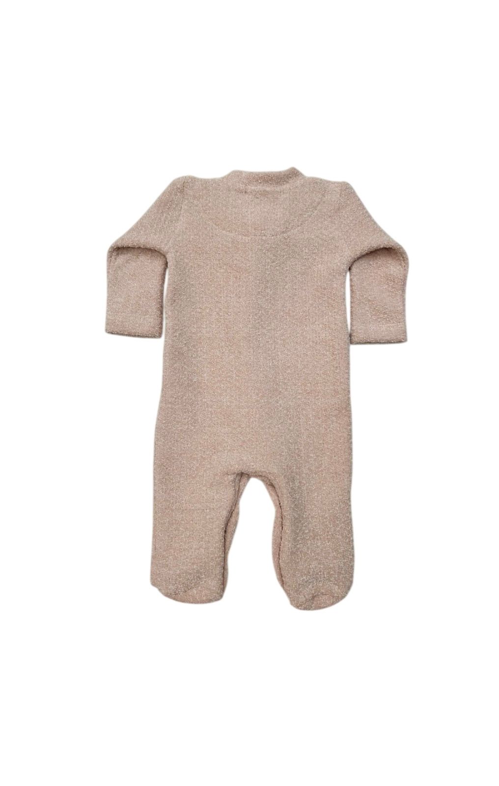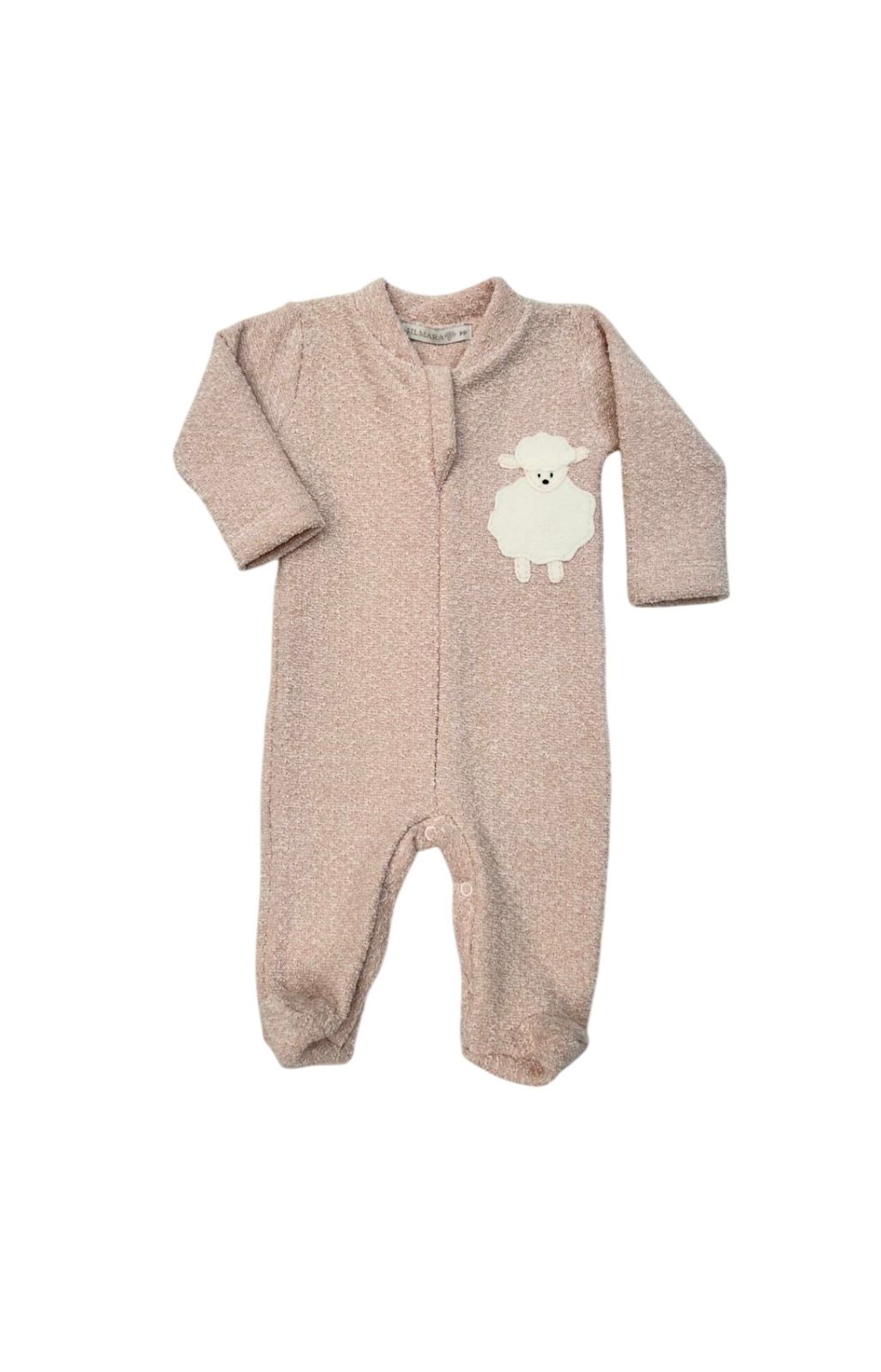Macacão de Microsoft, com aplicação de carneiro. Possui zíper na frente e botões entreperna, a partir do tamanho GG não possui pé.