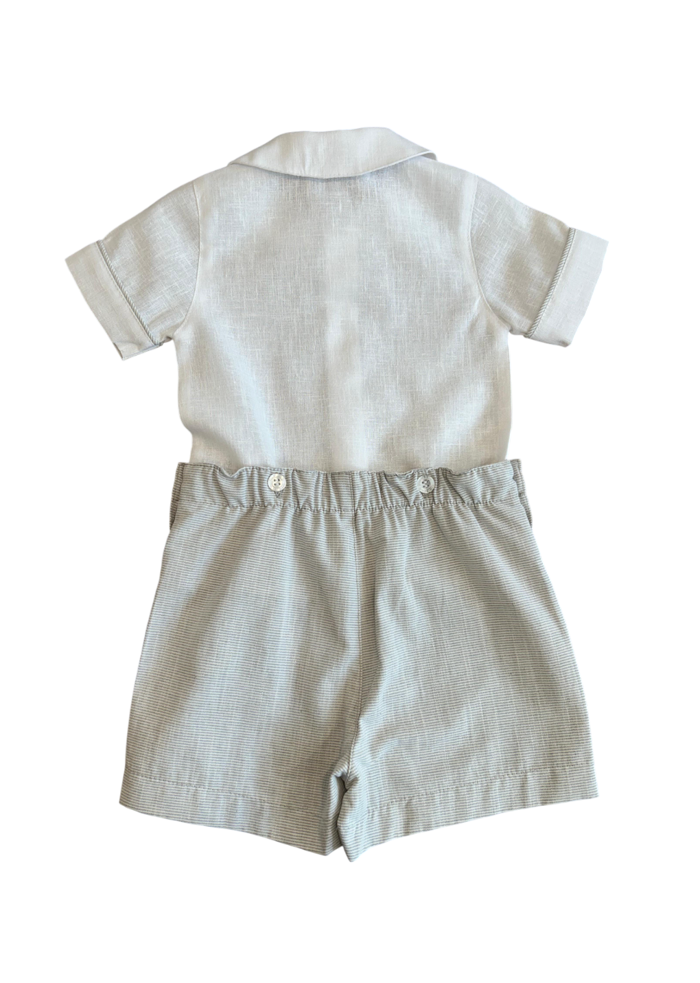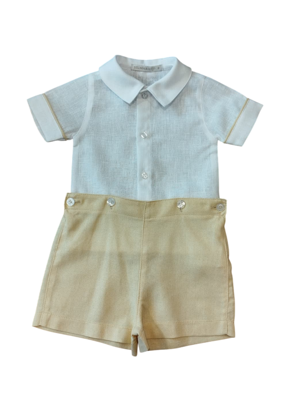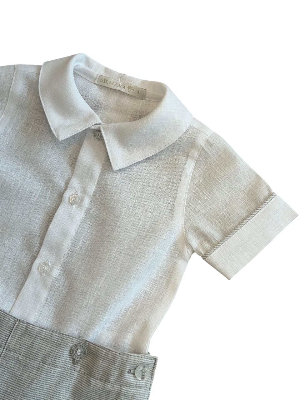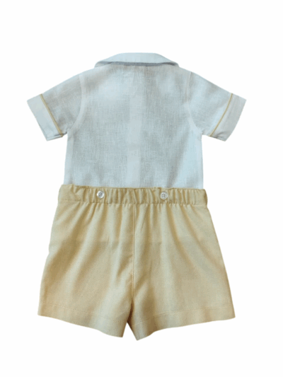 Macaquinho Botões possui gola polo, botões na frente e viés na manga com a mesma cor do short. Com elástico nas costas.