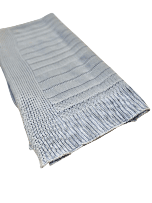 Manta feita em tricot 50% algodão e 50% acrílico.
