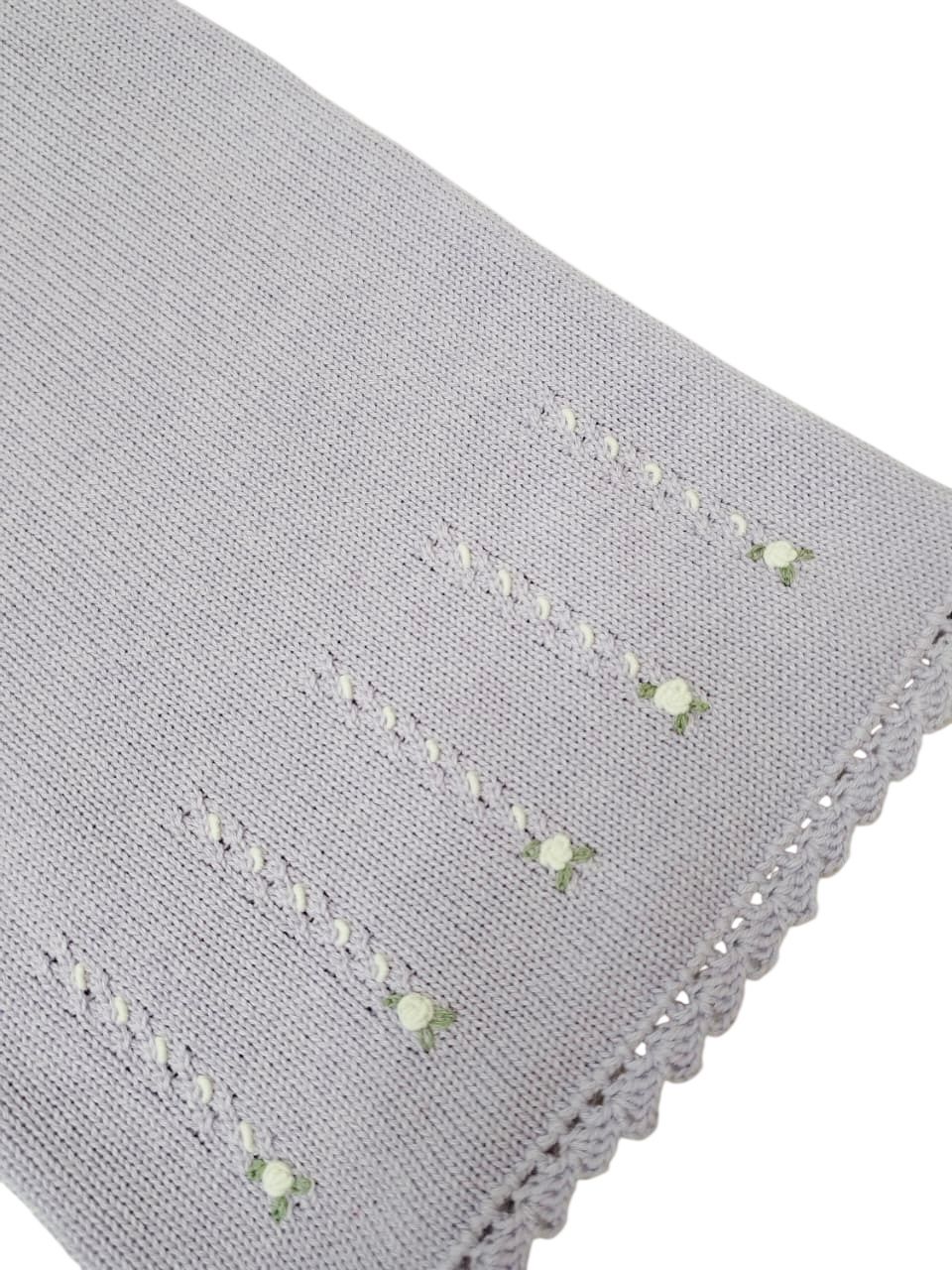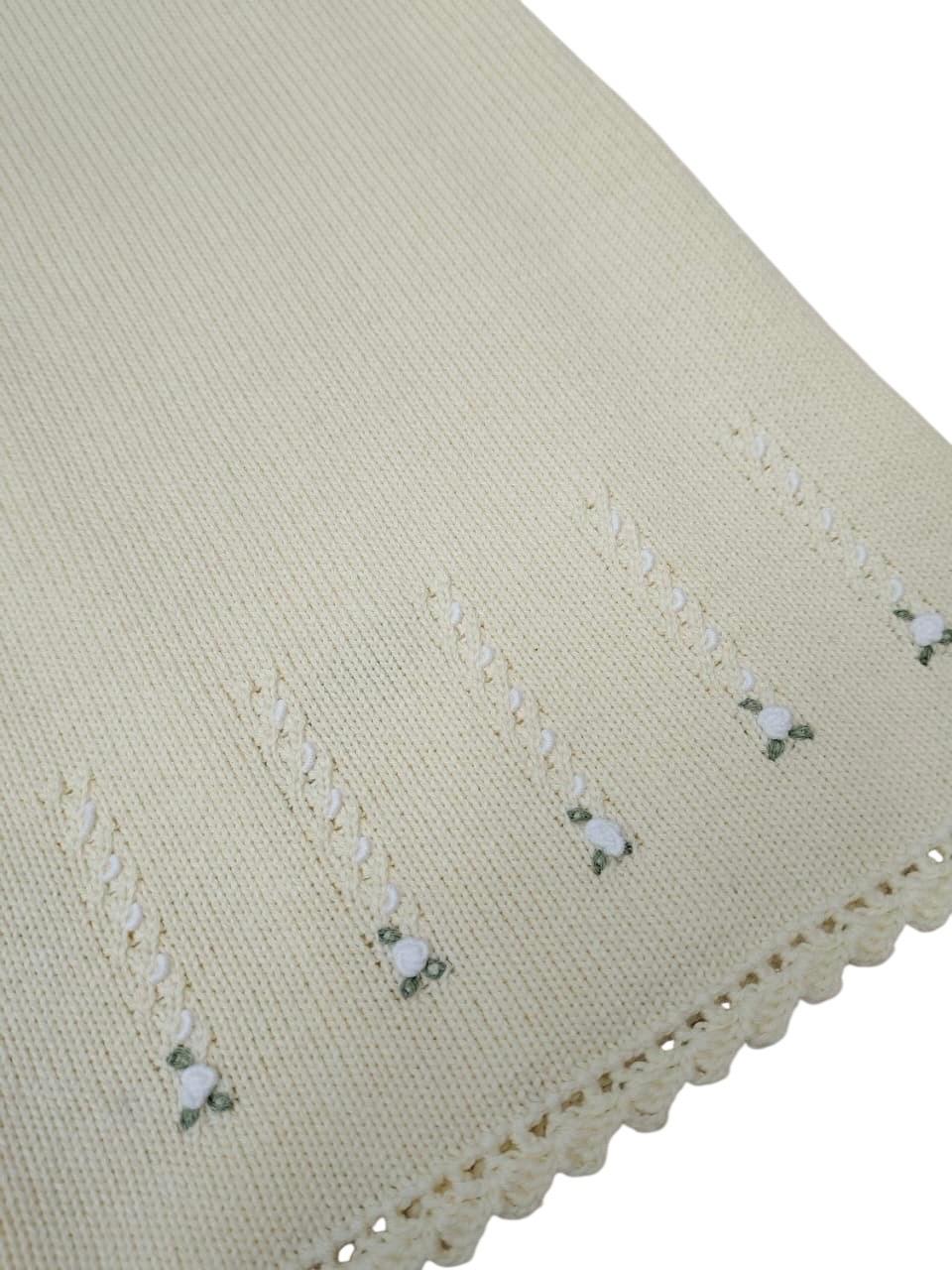 Manta Isabel em tricot, possui bordado rococó.