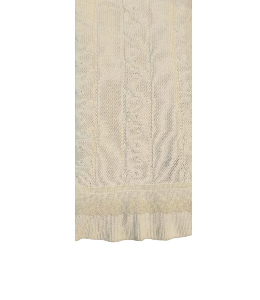 Manta de tricot com detalhes de trança e aplicação de renda contornando toda a peça