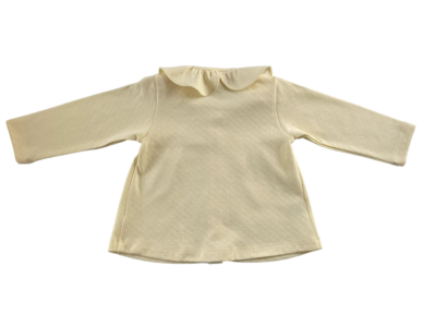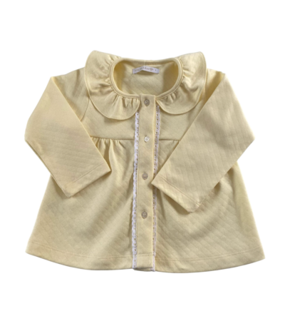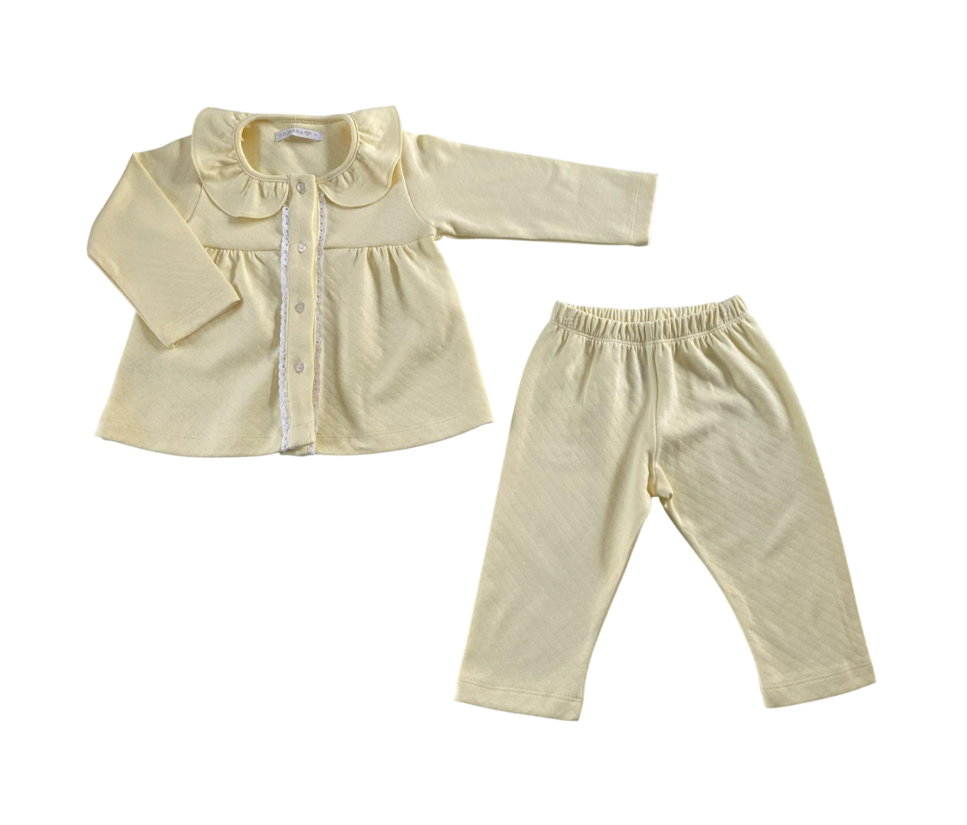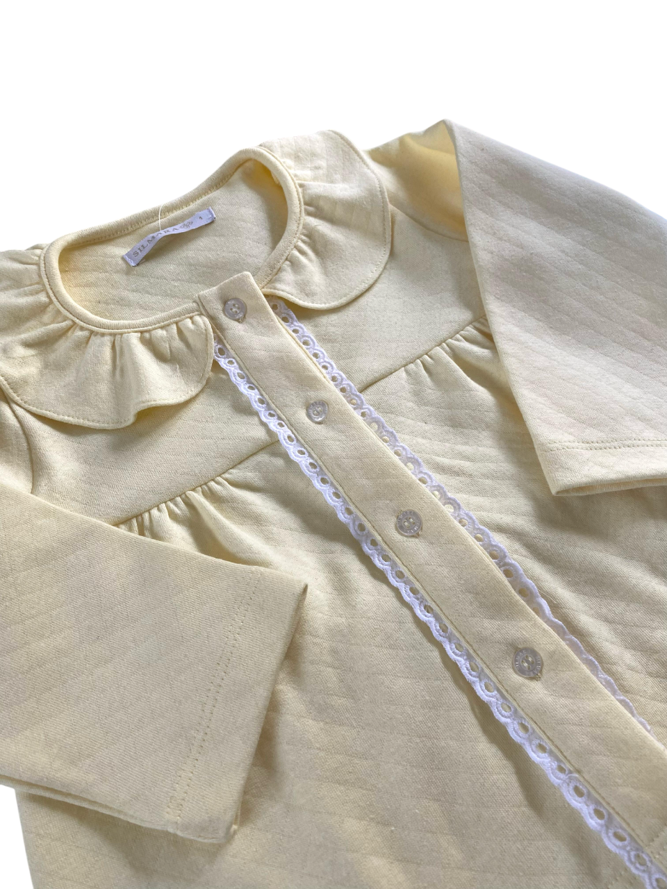 Pijama com gola babadinho e detalhe rendinha. 100% algodão.