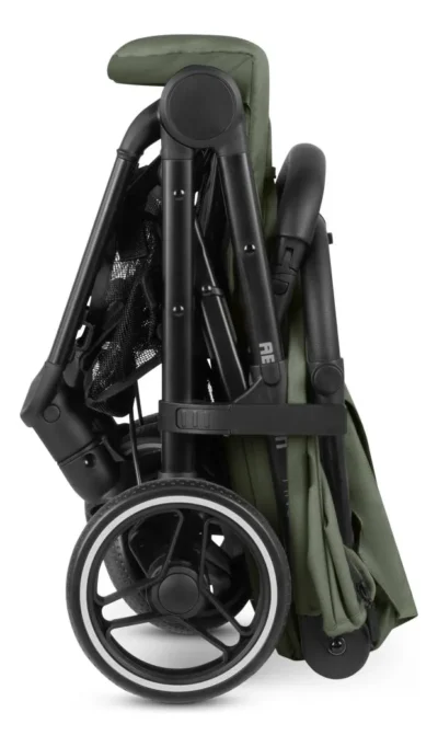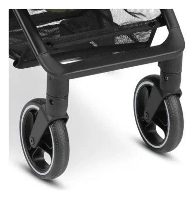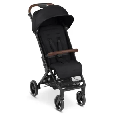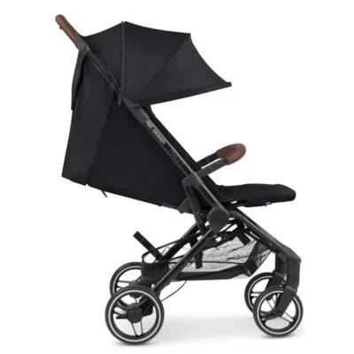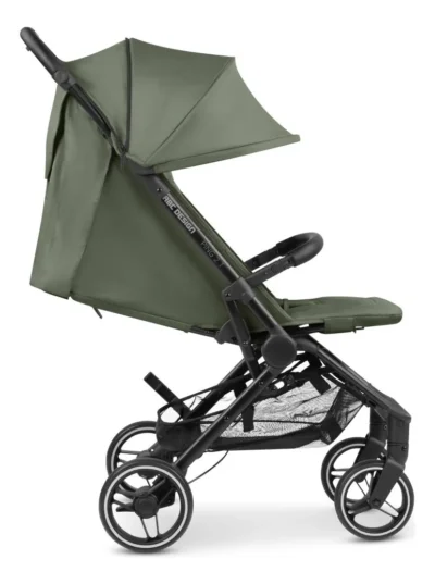 - Com freios e capota retrátil.