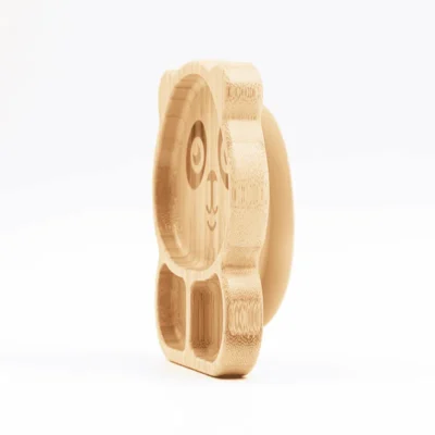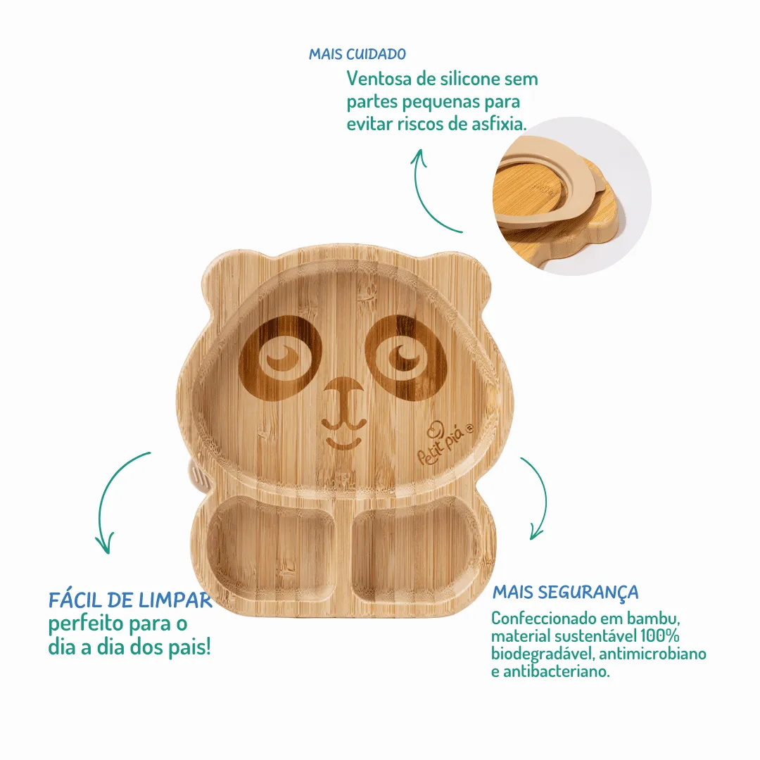 - Conteúdo: Um prato infantil de bambu com ventosa e divisória no formato de panda