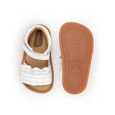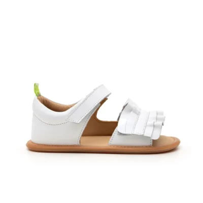 A sandália RUFFY é ideal para bebês em seus primeiros passos, apresentando um calcanhar fechado para dar estabilidade. Seu fecho em tira com detalhes de babados não apenas oferece um charme especial, mas também se abre completamente para facilitar o calce e o ajuste em todos os tipos de pezinhos.