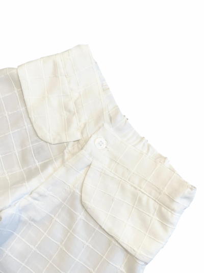 O Shorts pala foi feito em tecido leve e confortável, ideal para os dias mais quentes. Possui cós com elástico embutido para ajuste, fechamento com zíper e botão na frente, com pala na cintura para trazer mais delicadeza e estilo.