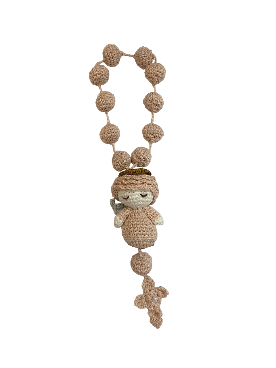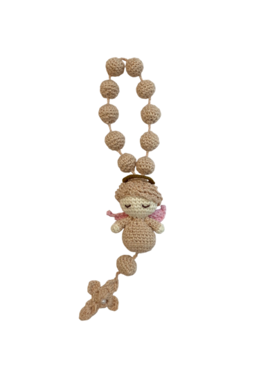 Terço amigurumi feito a mão com fio 100% algodão, e preenchido com fibra siliconada antialérgica.