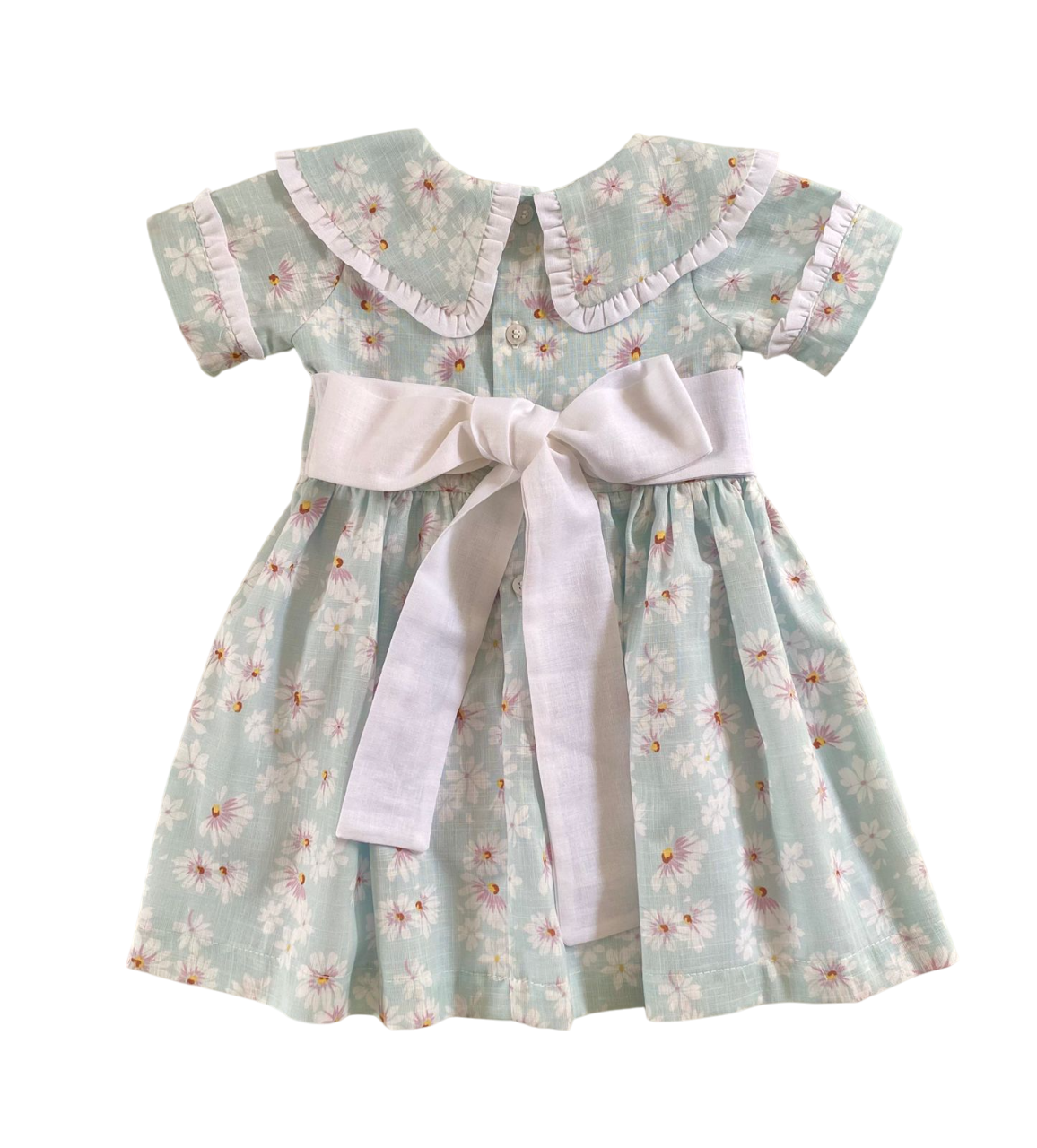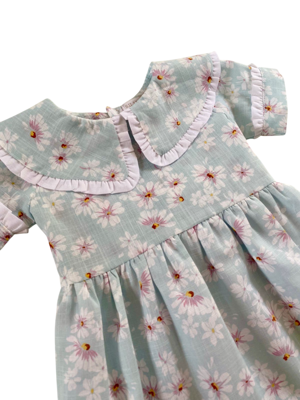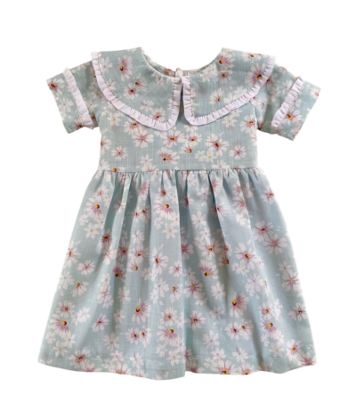 Vestido pala com gola quadrada e detalhes babadinho. 100% Viscose com forro 100% algodão.