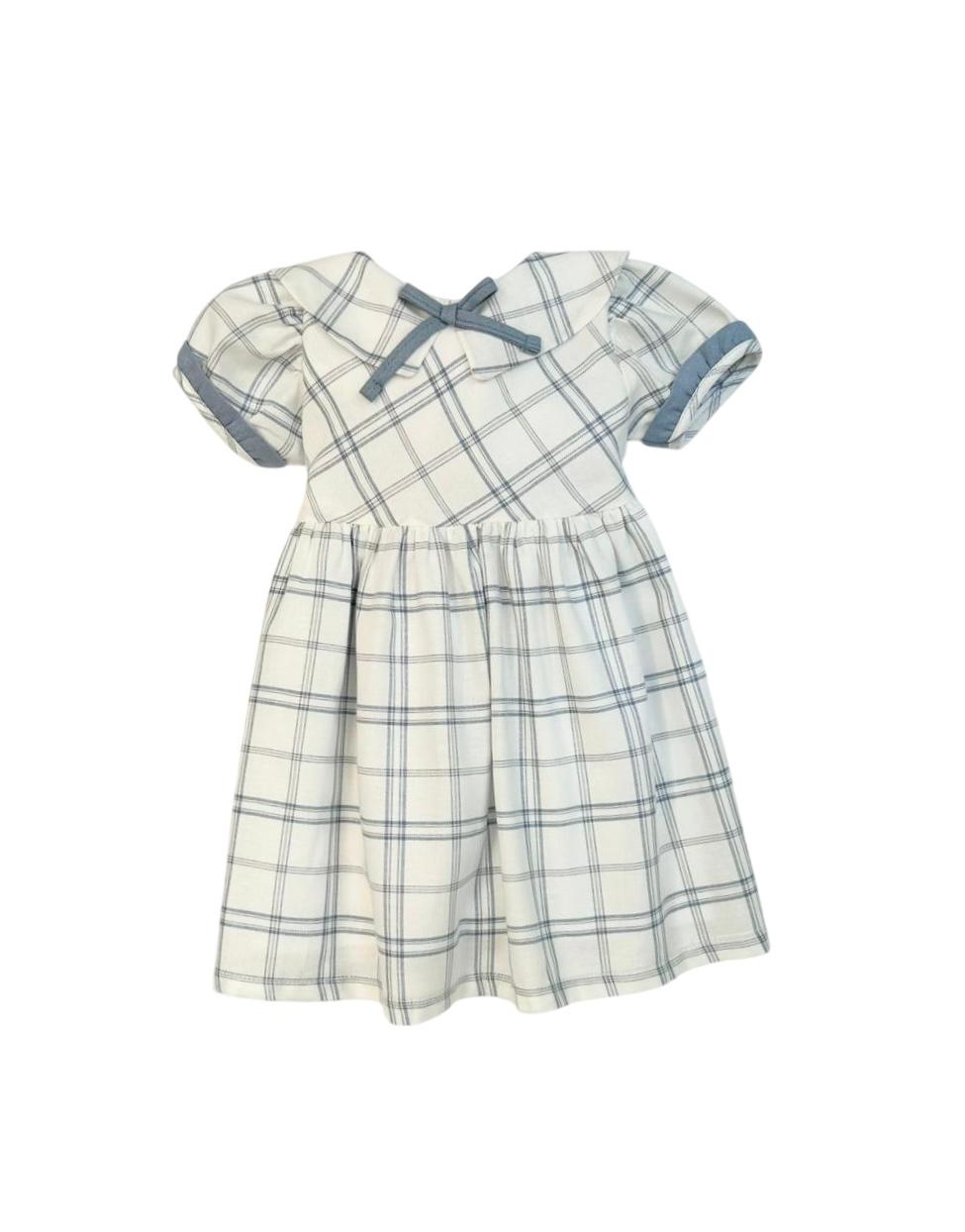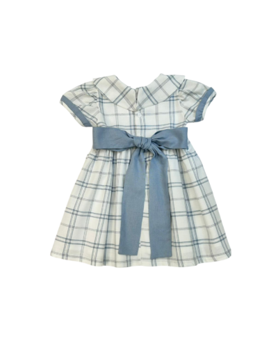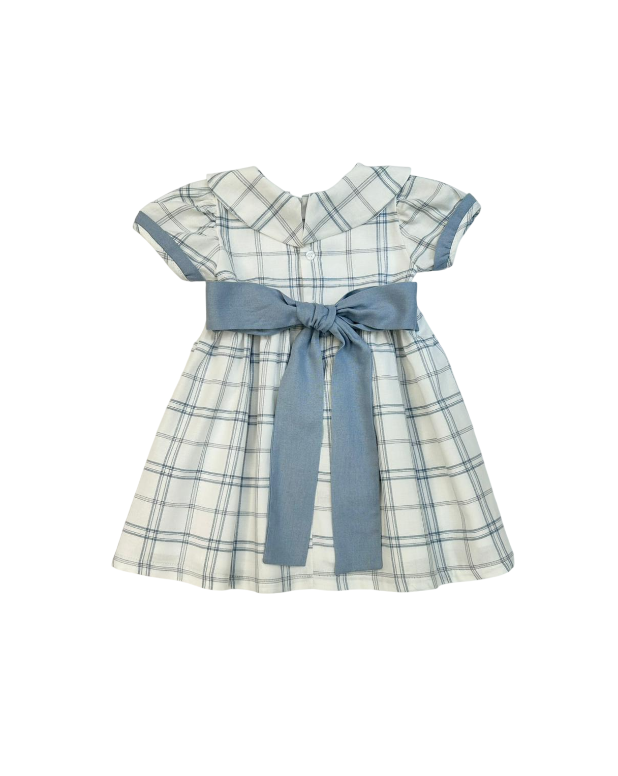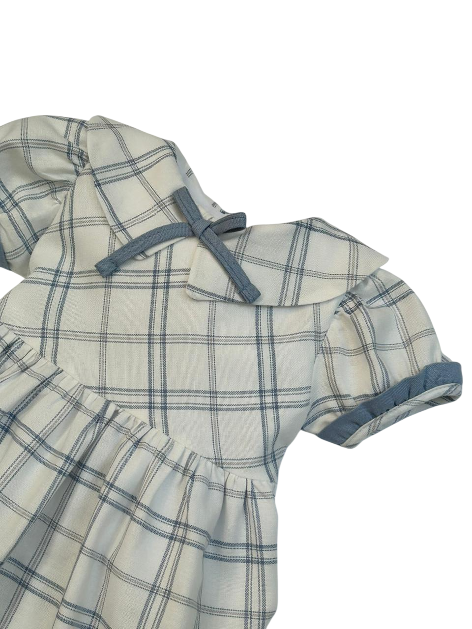 Vestido Golona em tecido xadrex, possui detalhe na manga e laço na gola, com botões para fechamento nas costas e faixas para amarração.