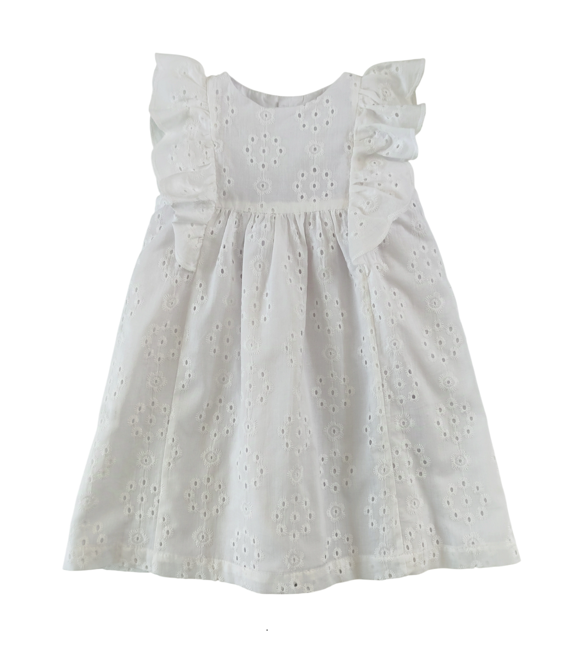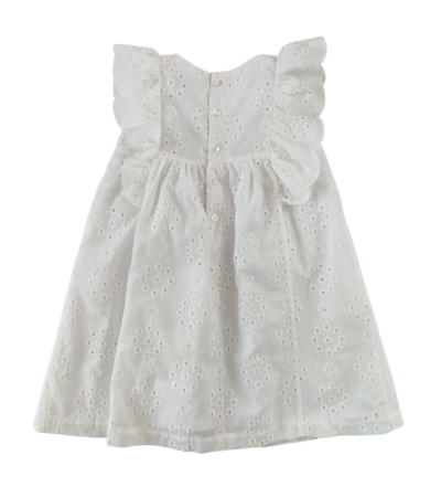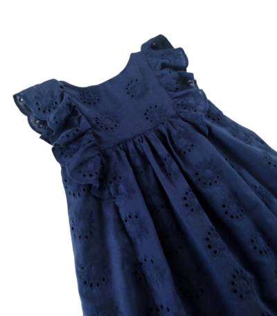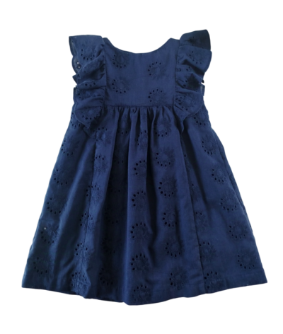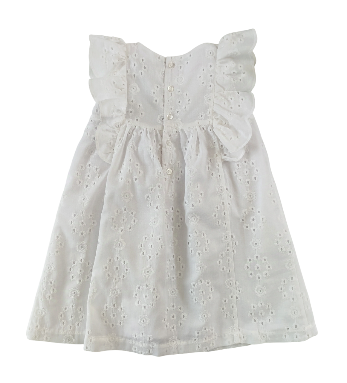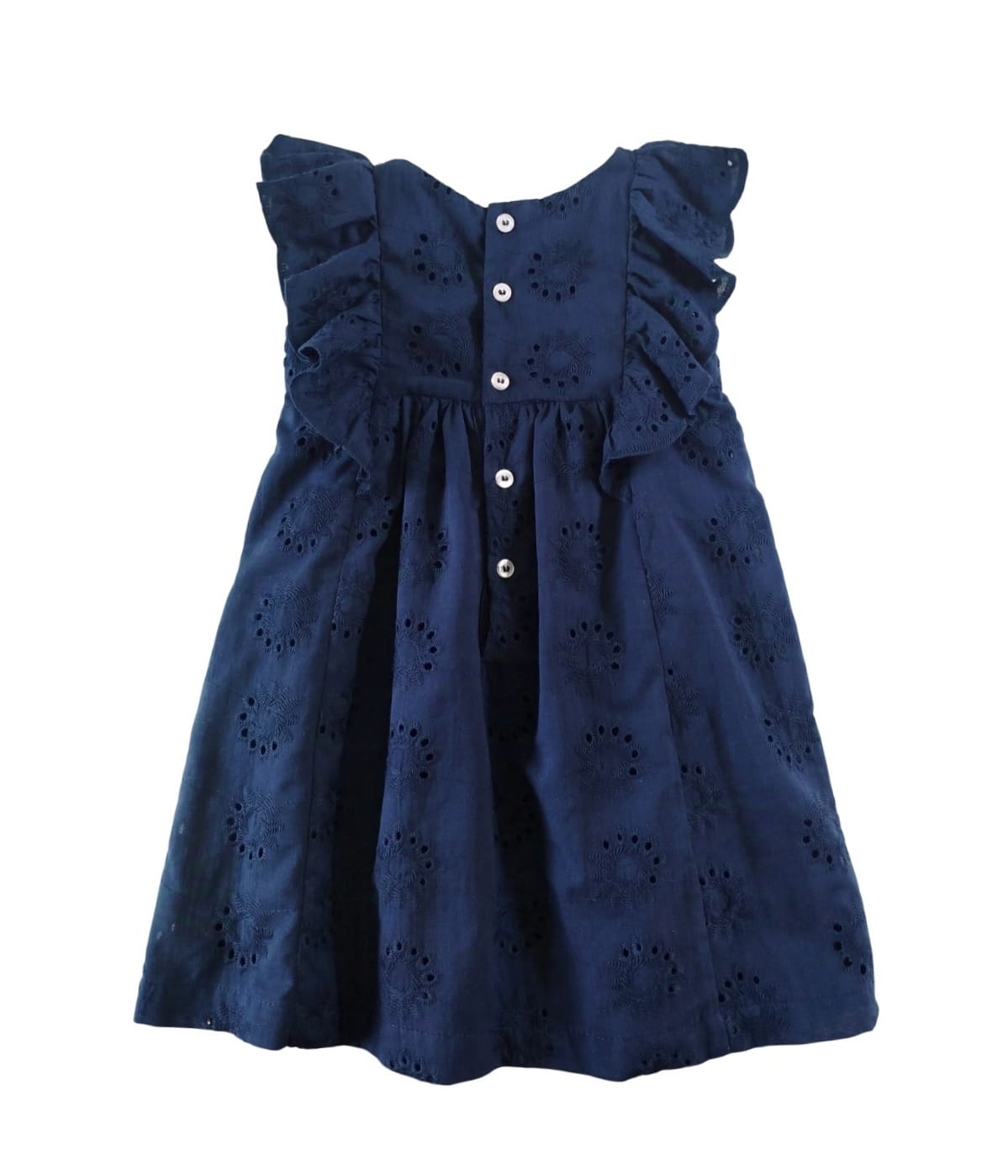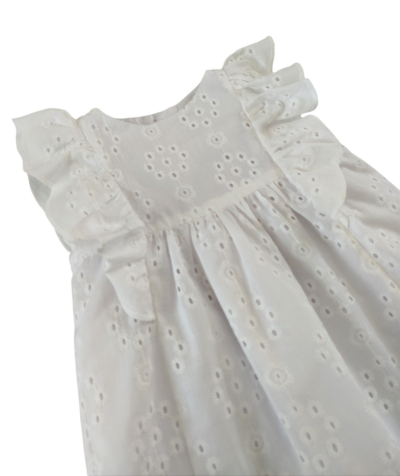 Vestido feito em lesie com pala babado e botões para fecho. Forro 100% algodão