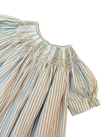 Vestido russinho com gola casinha de abelha e fechamento nas costas com botões, acompanha calcinha no mesmo tecido.